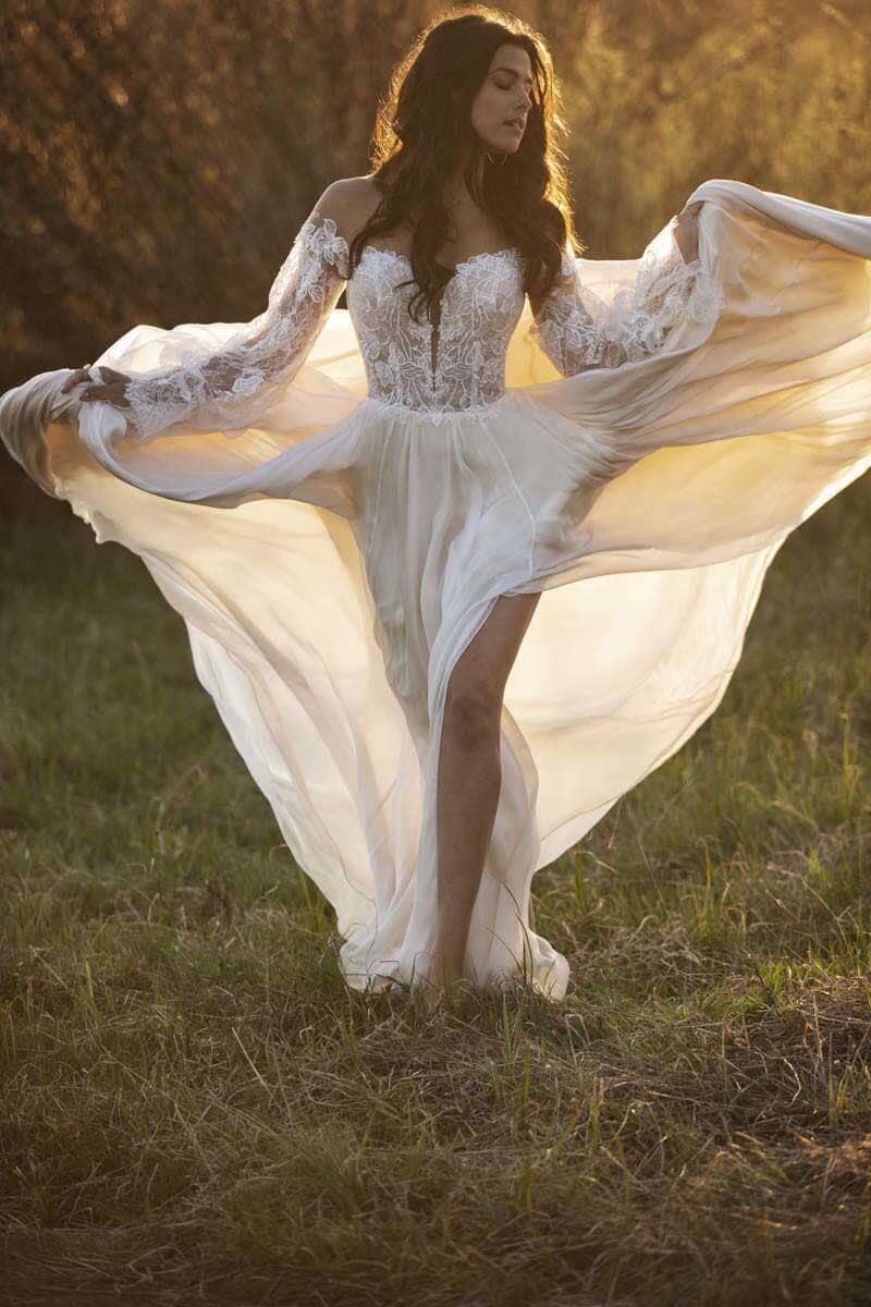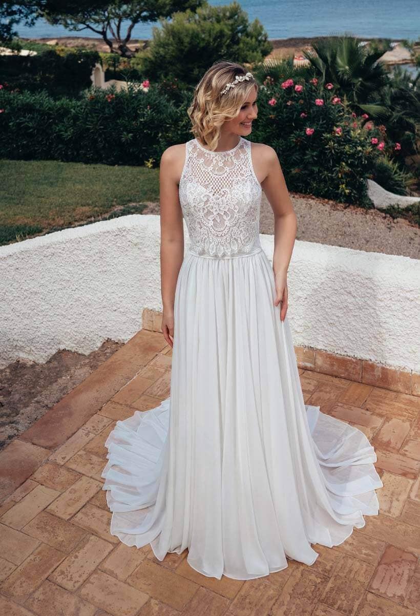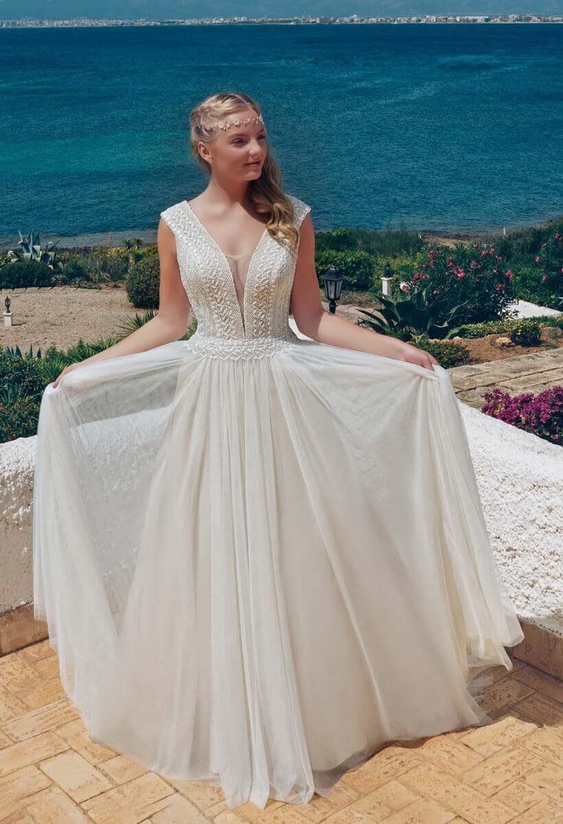 Inspiriert durch die wilde Natur des Ozeans sind die Strand Brautkleider unserer Kollektion mühelos, luftig und fesseln die Schönheit der Küste.