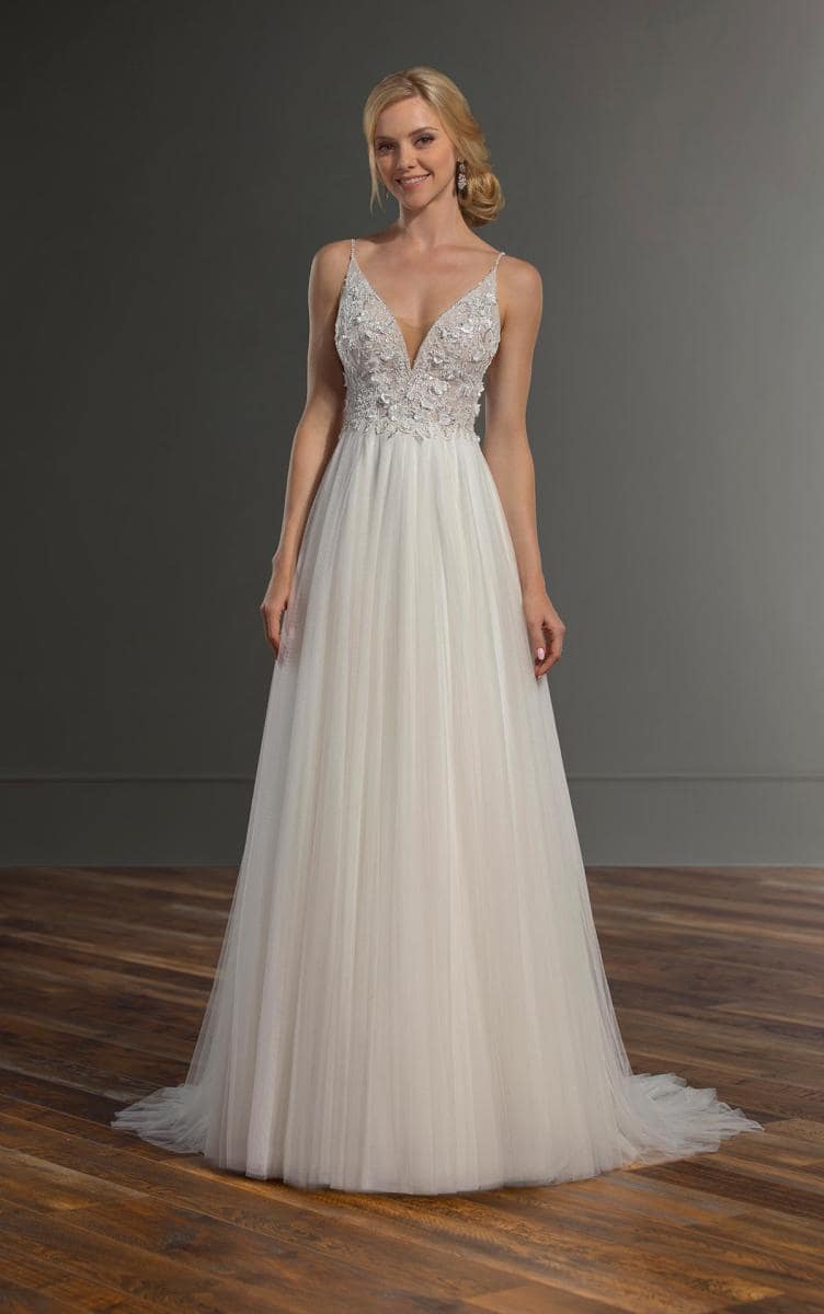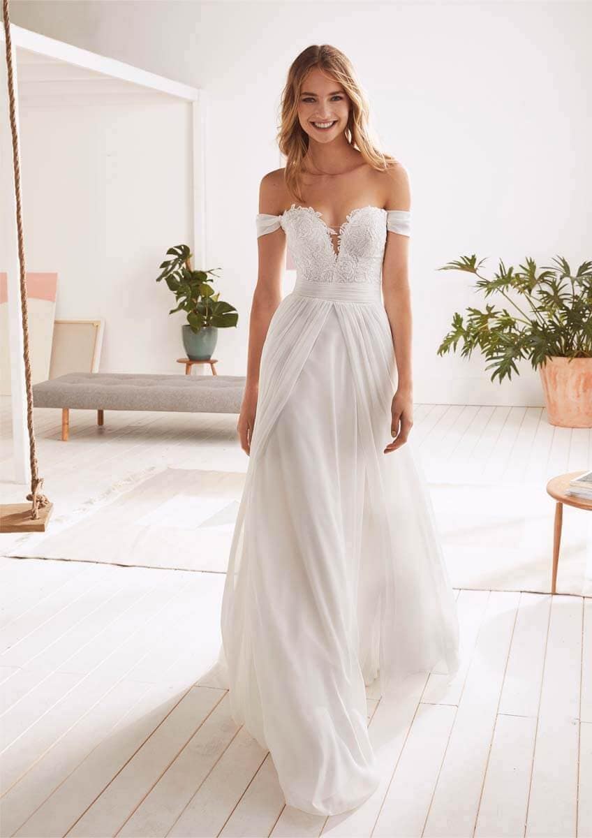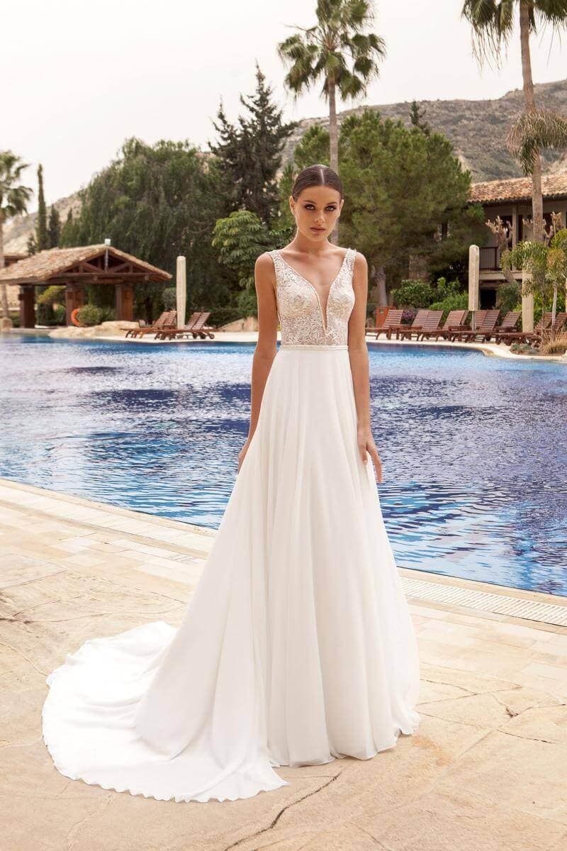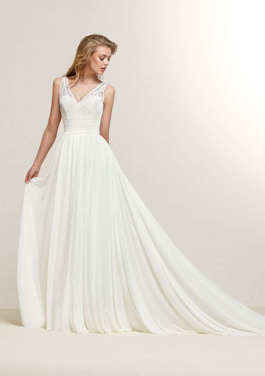 Inspiriert durch die wilde Natur des Ozeans sind die Strand Brautkleider unserer Kollektion mühelos, luftig und fesseln die Schönheit der Küste.
