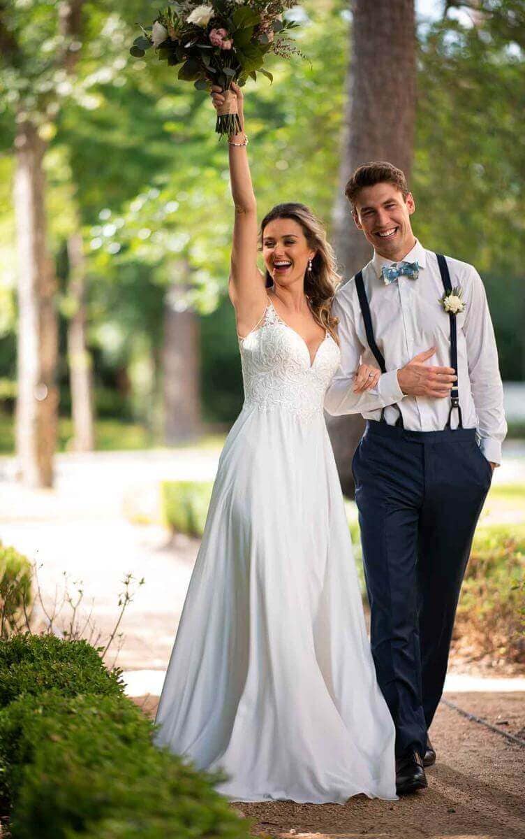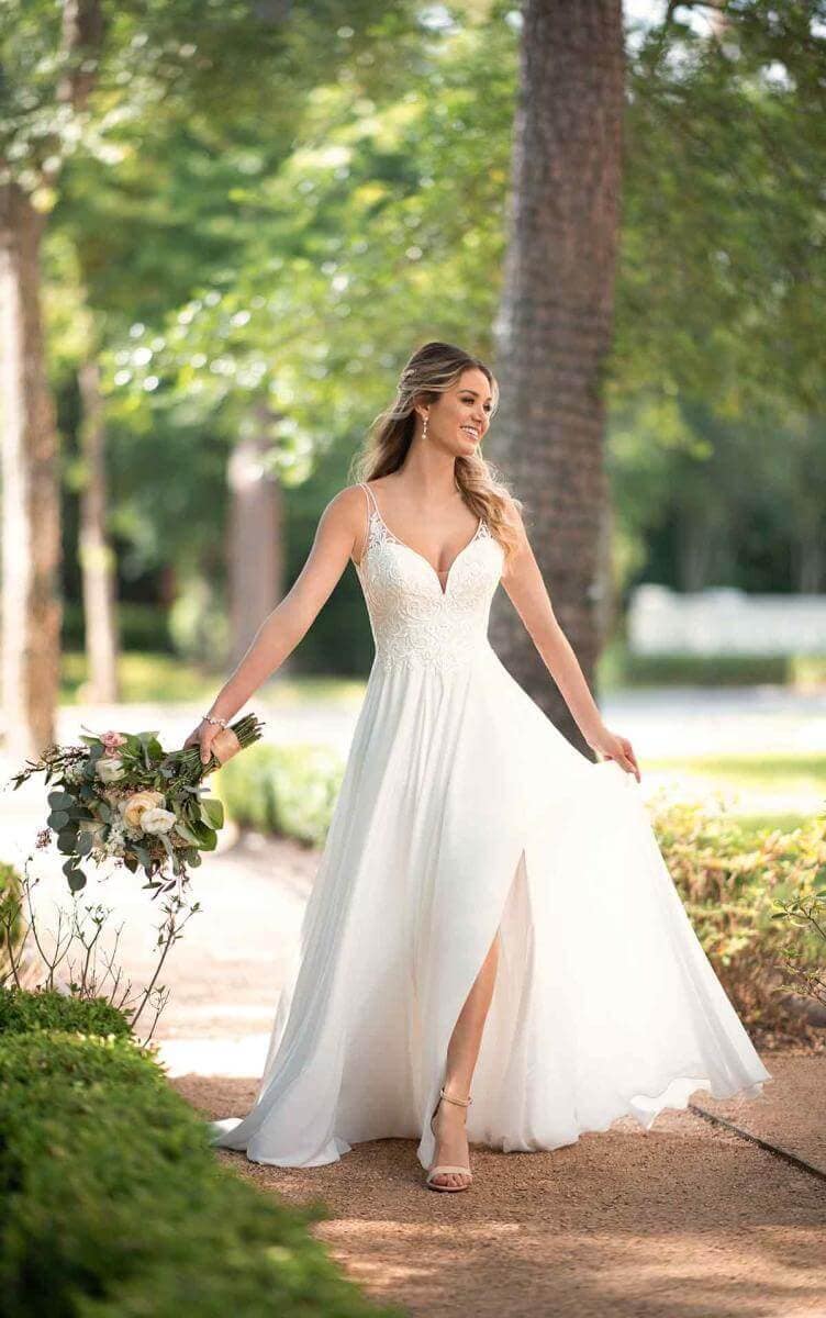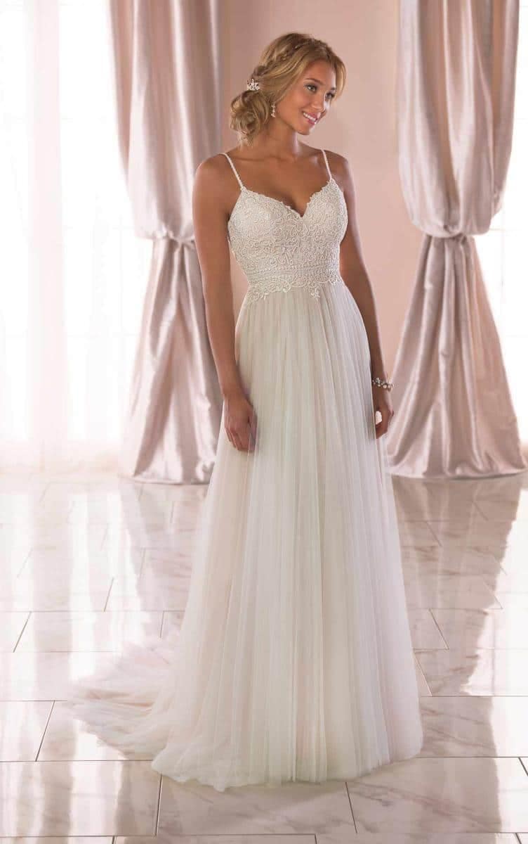 Strandhochzeitskleider geben Dir ein unkompliziertes Gefühl, ohne auf den Brautlook zu verzichten.