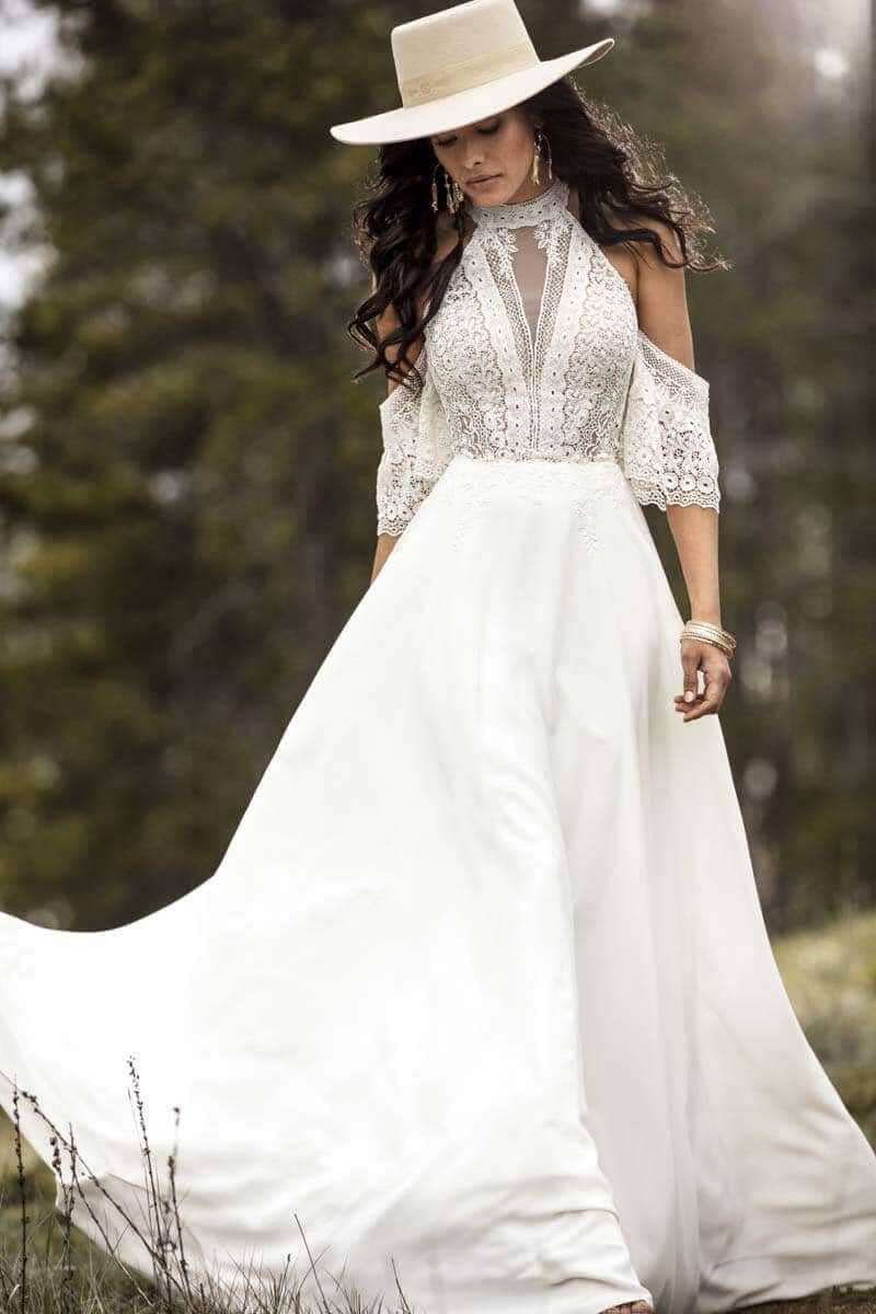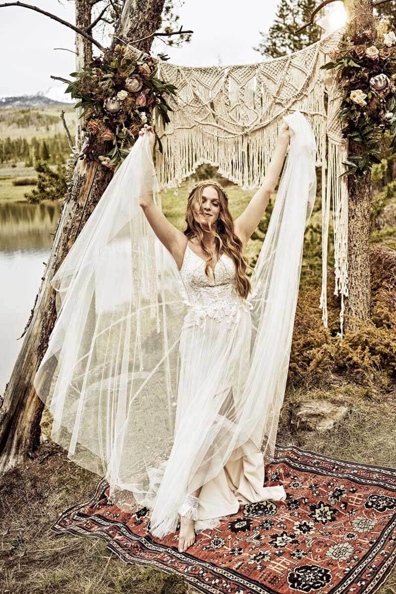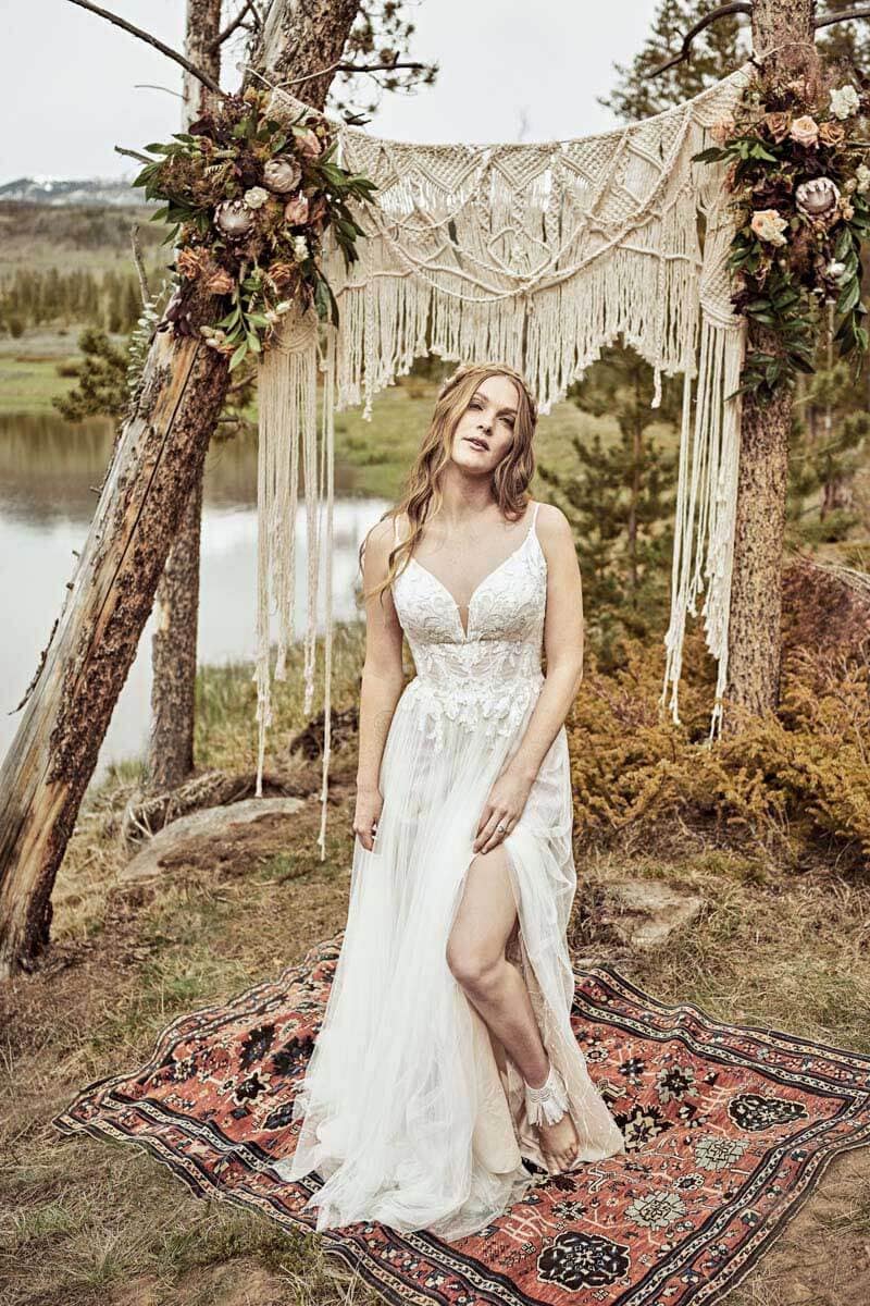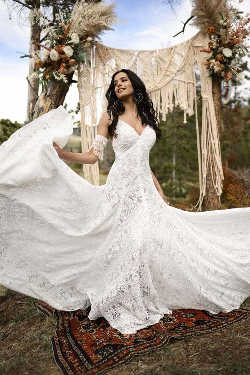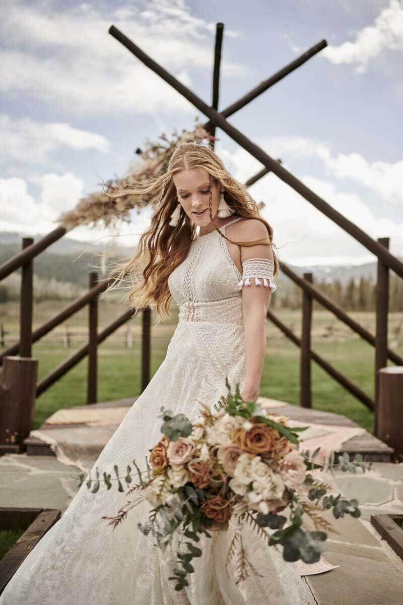 Tiefe Rückenausschnitte mischen sich mit Bohoelementen und schaffen so lufitge Brautkleider, die perfekt für eine Hochzeit am Meer sind.