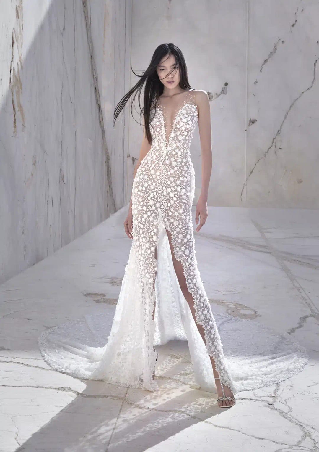 Erlebe die luxuriöse Eleganz des Atelier Pronovias Designer Brautkleids Verdant! Dieses Kleid aus der Haute Couture Kollektion ist dank der durchsichtigen Stoffe, einem hohen Schlitz und allover Bestickungen ein absoluter Traum. Der tiefe Rücken und der Herz-Ausschnitt ergänzen das Design, während sich die Chantilly Spitze, die3D Blumen Details, Fit and Flare Stil und die Unterstreichung der weiblichen Silhouette in einem sexy Look vereinen. Dein schönster Tag wird unvergesslich sein! Es sorgt für einen Hauch von Eleganz und verleiht dir das Gefühl, göttlich zu sein! Genieße die raffinierten Details dieses Luxus-Designs, das deine weibliche Silhouette unterstreicht und dir einen einzigartigen Look verleiht. Mit diesem Design siehst du nicht nur atemberaubend aus, sondern du fühlst dich auch wie eine Königin!
