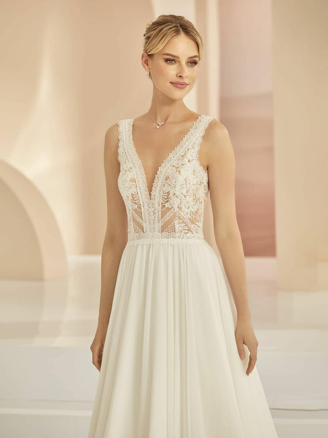 Die Kleider der Kollektion Bianco Evento zeichnen sich durch einen ganz besonderen Zauber aus, mit dem du alle um dich herum begeistern wirst.