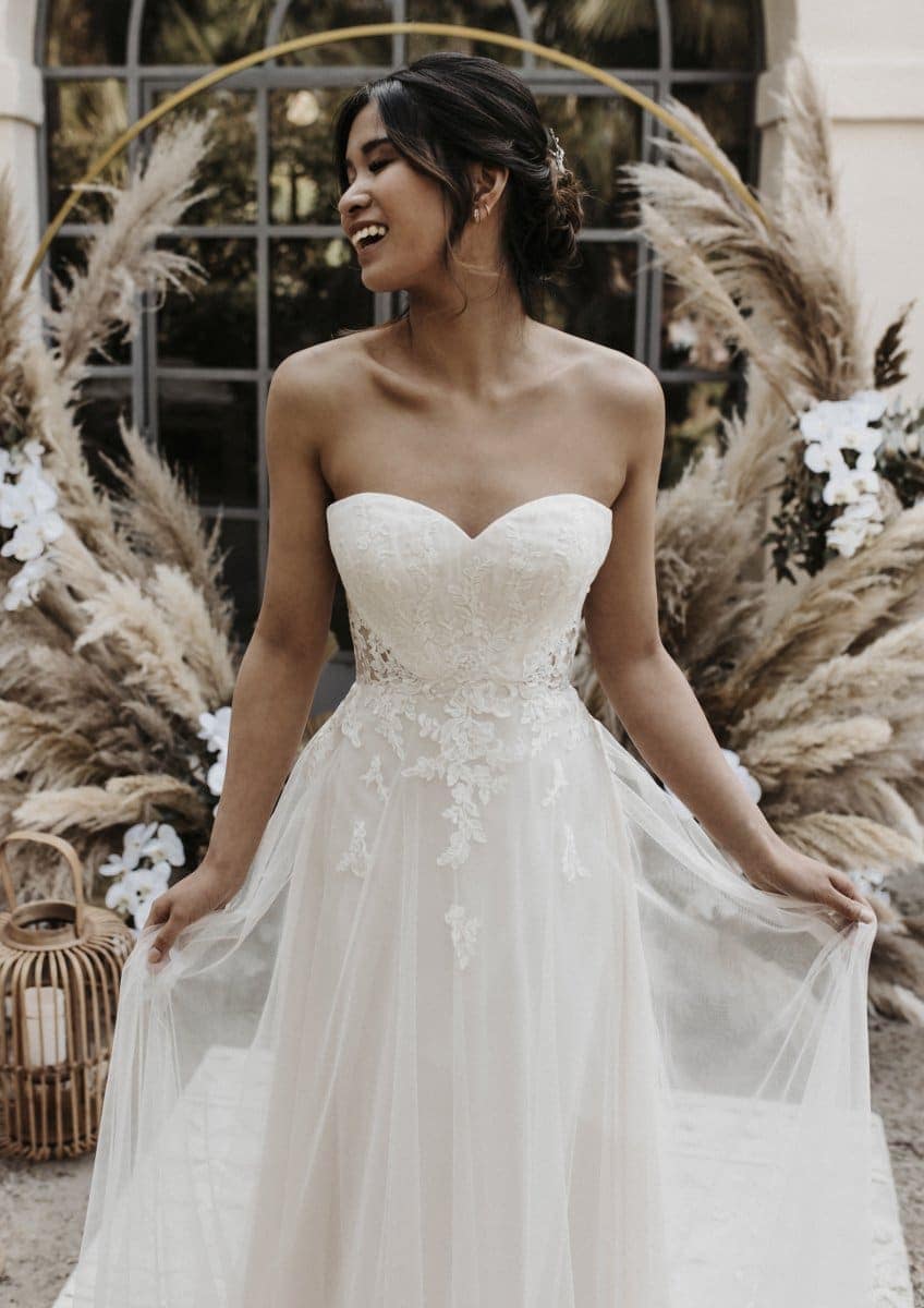 Wohlfühlen in A-Linie: Das Kleid Bridentity Charm hinterlässt einen bleibenden Eindruck für den schönsten Tag eures Lebens.