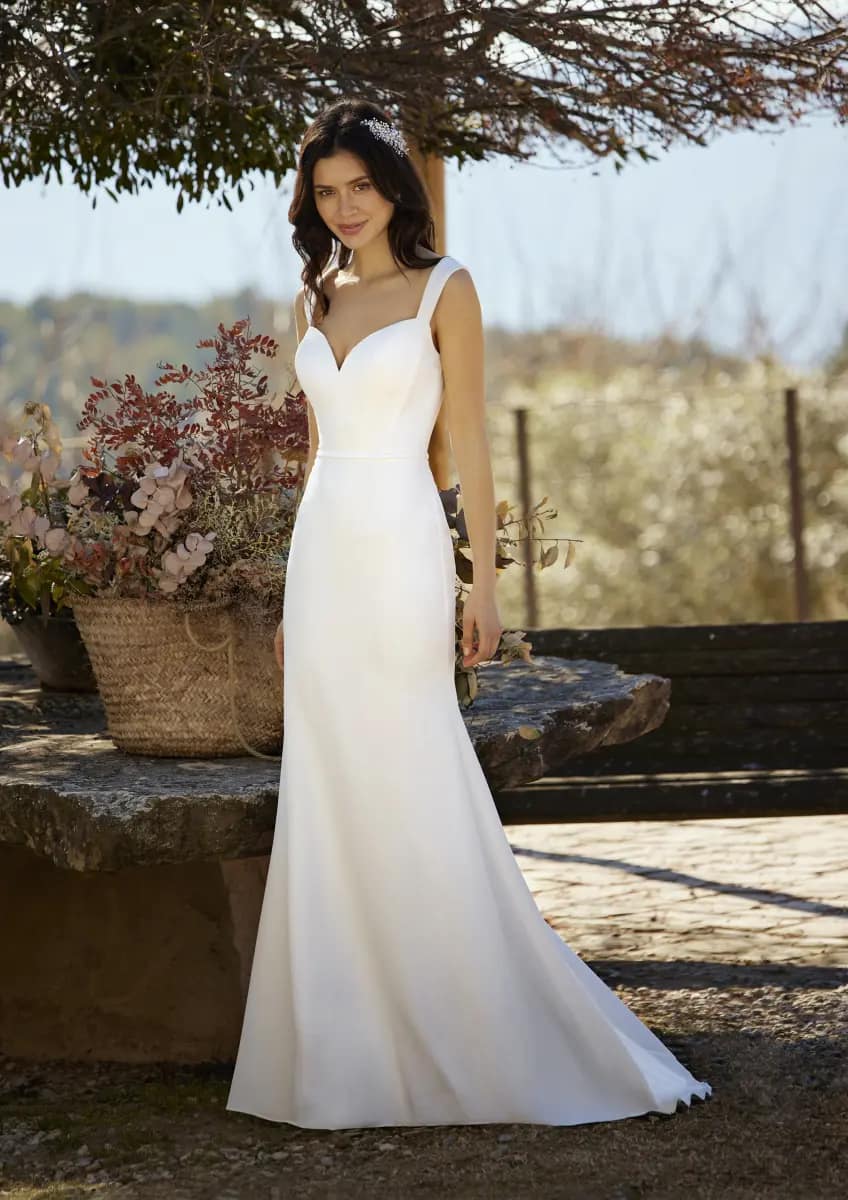 Trotz der kurzen Schleppe ist das Modell fein und märchenhaft – besonders beim Gang zum Hochzeitsaltar oder wenn du beim Tanzen in den Armen deines Liebsten bist.