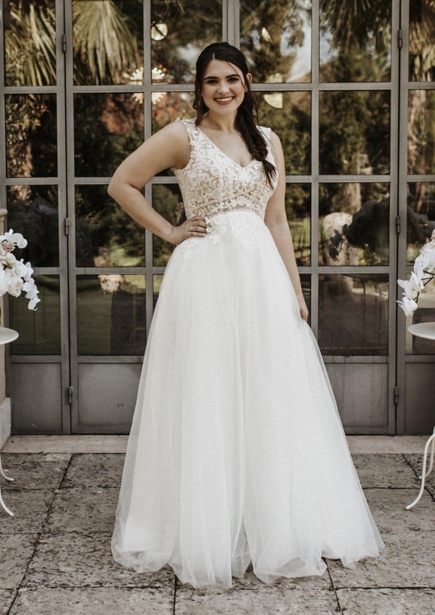 Mit dem Kleid Bridentity Innocence in A-Linie wird dein Gang zum Hochzeitsaltar unvergesslich.