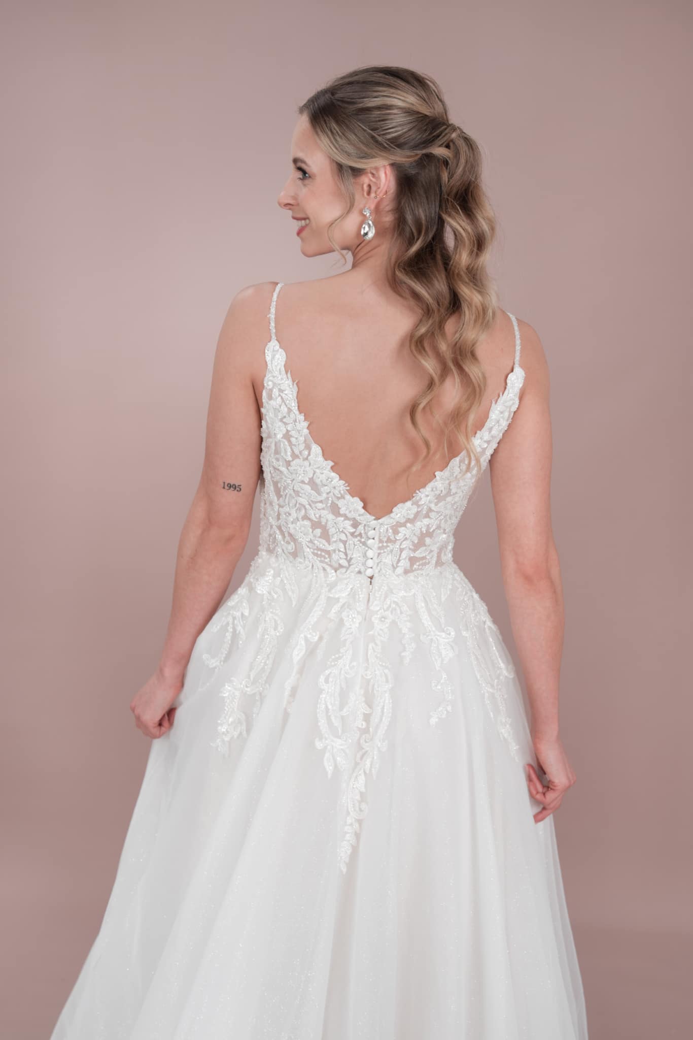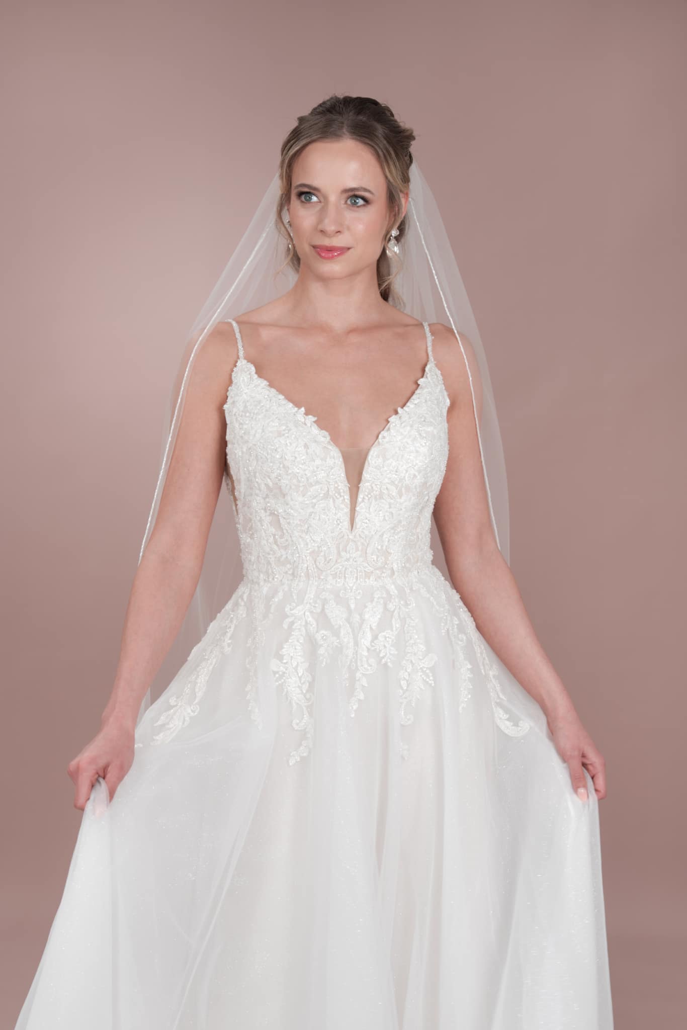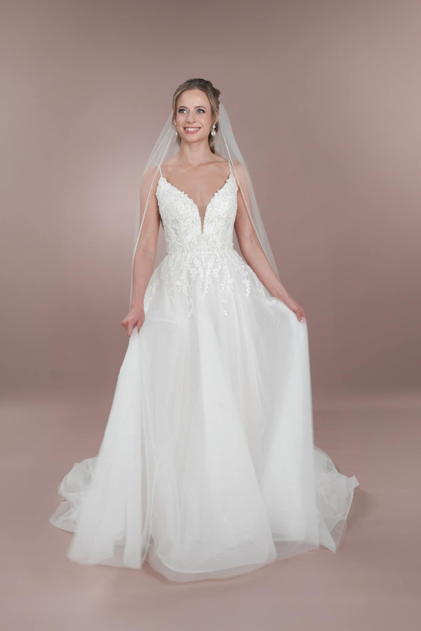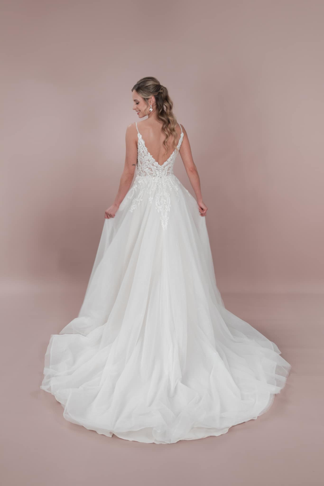Das Bridonista Hochzeitskleid C24-19 ist die perfekte Mischung aus klassisch, modern und zeitlos! Mit verspielten Spaghetti-Trägern, einem V-Ausschnitt, wunderschönen Stickereien, Cut-Outs und einem kurzen Tüllrock wird dieses schmeichelhafte A-Linien-Kleid dich an deinem großen Tag zum Strahlen bringen. Der glitzernde Tüll sorgt für zusätzlichen Glanz, die mittellange Schleppe für das klassische Prinzessinnen-Gefühl und der V-Rücken lässt die Menge staunen. Setze dem Ganzen die Krone auf und zeige, was du kannst! Dieses aufsehenerregende Kleid sorgt mit seinen raffinierten Details dafür, dass du auf deiner Feier die Blicke auf dich ziehst. Mach dich bereit für eine Nacht, in der du singst, tanzt und deinen unglaublichen Stil zur Schau stellst!