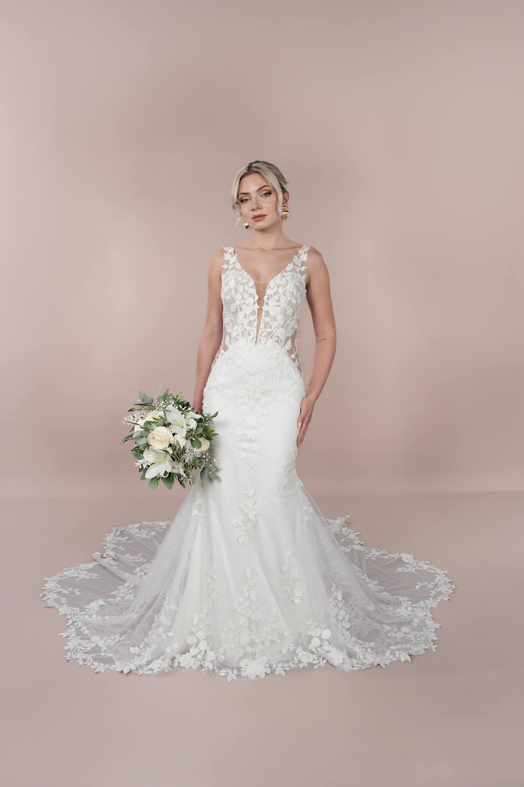 Besuche uns in einer unserer stilvollen Boutiquen, um dieses exquisite Kleid hautnah zu erleben und deinen Traum von der perfekten Hochzeit zu verwirklichen. Lass dich von der Anmut und dem luxuriösen Stil des Bridonista C25-F08 verzaubern und genieße jeden einzigartigen Moment deines besonderen Tages.
