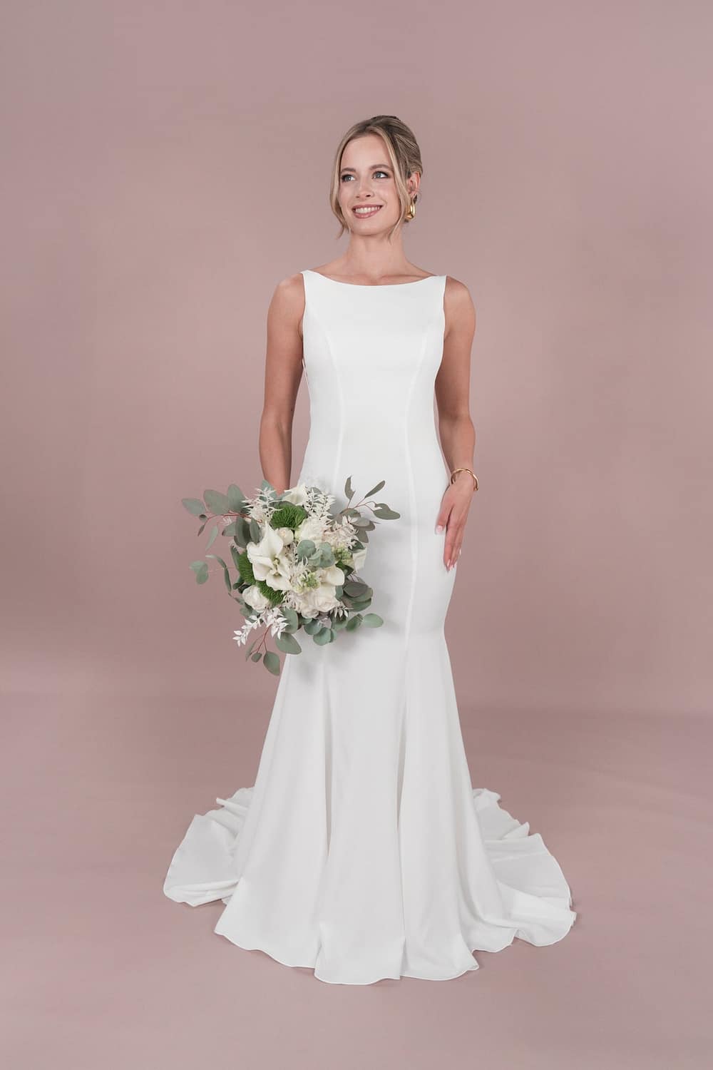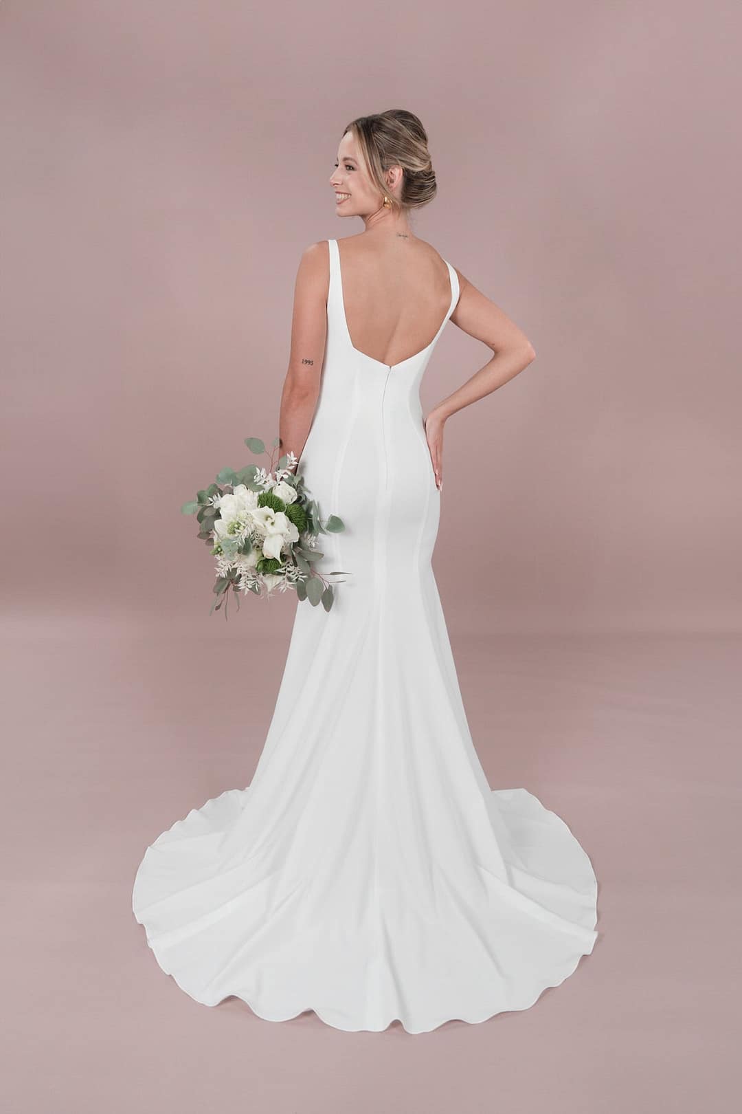 Feiere deinen großen Tag mit dem R2L25-C-F01 Brautkleid. Mit einem Hauch von Royal und Rückenausschnitt in V-Form ist es klassisch und doch modern. Das Fit and Flare-Design mit Schleppe kurz und Cutouts sorgt für einen eleganten, aber verspielten Look. Aus hochwertigem Crepe gefertigt, passt es perfekt zum Hoch- oder gerade geschnittenen Ausschnitt. Unser R2L Capsule-Kollektion bietet einen sauberen und tiefen Rücken für eine freche Note. Das Kleid sorgt für einen klassisch-modernen Look und besteht aus hochwertigem Crepe. Mit einem V-förmigen Rückenausschnitt, Cutouts und einer Schleppe in Kurzform bietet es einen elegant-verspielten Stil. Hol dir einen Hauch von Royal in deine Hochzeit mit diesem Kleid aus der R2L Capsule-Kollektion. Und mit seinem sauberen und tiefen Rücken verleiht es deinem Look eine freche Note.