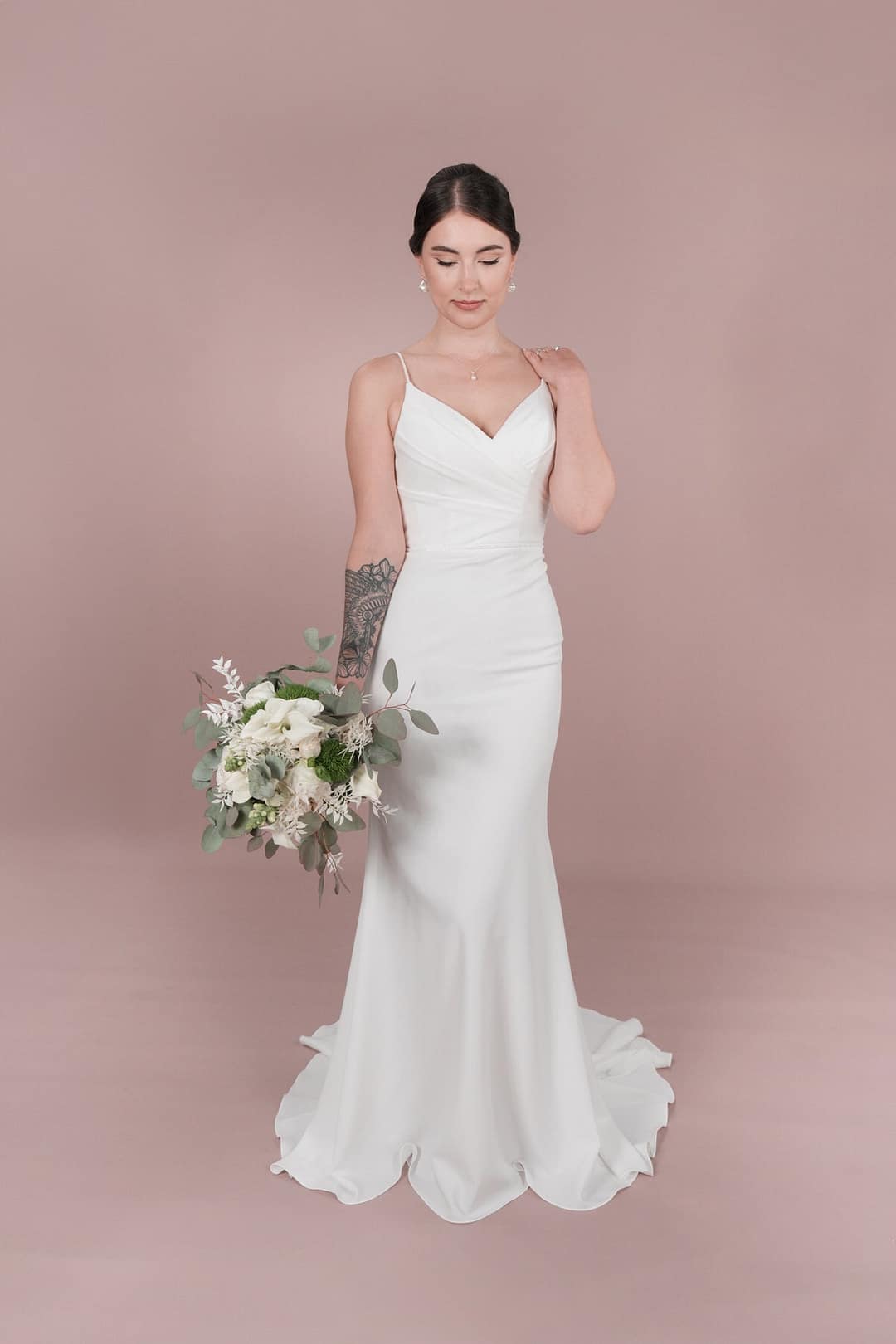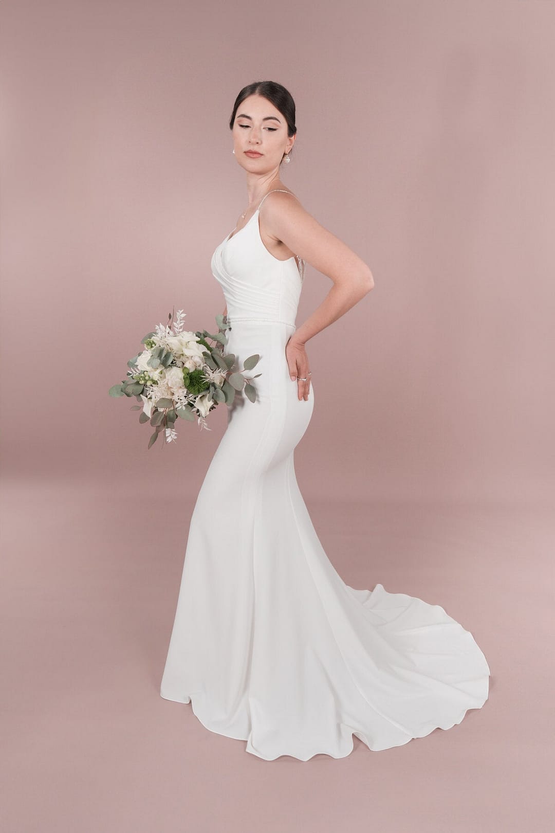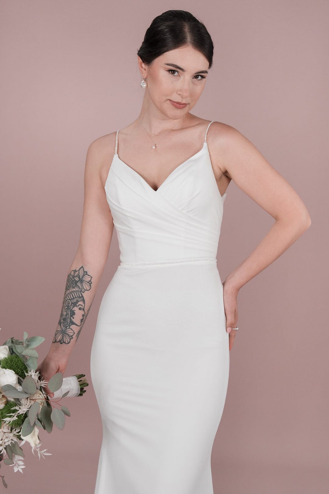 Fühle dich wie eine Bridonista Braut mit diesem schlichten, aber glitzernden Brautkleid. Die Schleppe ist kurz und der Rückenausschnitt in V-Form verleiht einen königlichen Touch. Die Illusion-Tüllverzierung und die geraffte Corsage betonen deine Figur perfekt. Teil der R2L Capsule Kollektion für einen klassischen Look. Jetzt im Standesamt Stil. Es ist ein schlichter und doch funkelnder Stil für die Bridonista Braut. Mit einer kurzen Schleppe und einem V-förmigen Rückenausschnitt fühlt man sich wie eine Königin. Diese schillernde Illusion-Tüllverzierung und die geraffte Corsage werden deine Figur hervorheben. Es ist ein Teil der R2L Capsule Kollektion – einer klassichen Wahl für das Standesamt!