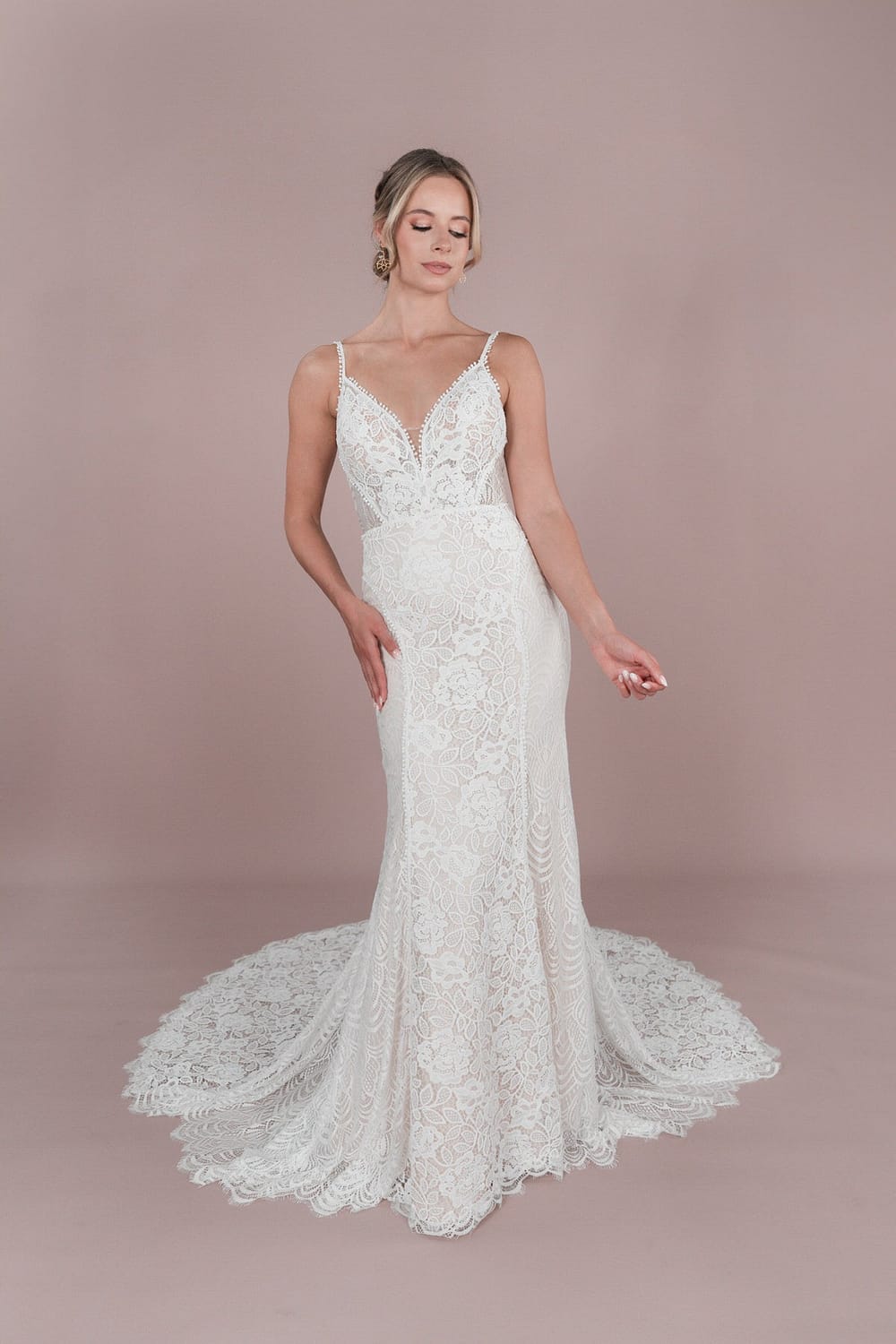 Schnapp dir den R2L25-C-F04 – ein Spitzen-Brautkleid mit sexy Rückenausschnitt und Perlenverzierung. Die Knopfleiste und das doppelte Taillenband verleihen ihm einen besonderen Vintage-Touch. Perfekt für eine Boho oder Vintage Hochzeit am Strand. Mit Chantilly Spitze, Illusion-Tüll und mittellanger Schleppe – ein echter Hingucker! Unsere Hochzeitskleider sind ein echter Hingucker! Der R2L25-C-F04 ist das perfekte Outfit für eine Boho oder Vintage Hochzeit am Strand. Mit seinem sexy Rückenausschnitt, der Perlenverzierung, der Knopfleiste und dem doppelten Taillenband verleiht es dir einen besonderen Vintage-Touch. Und mit Chantilly Spitze, Illusion-Tüll und mittellanger Schleppe siehst du einfach umwerfend aus! Schnapp ihn dir jetzt! (Aber halt ihn gut fest, damit er nicht wegrennt!)