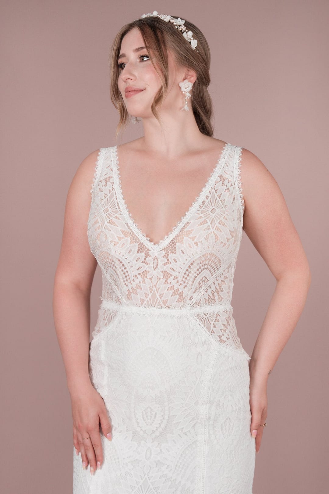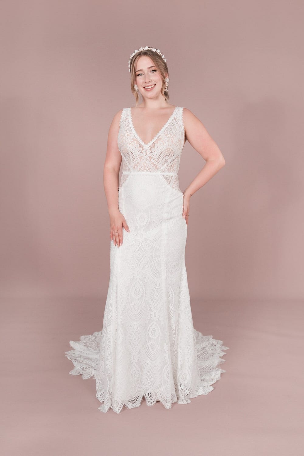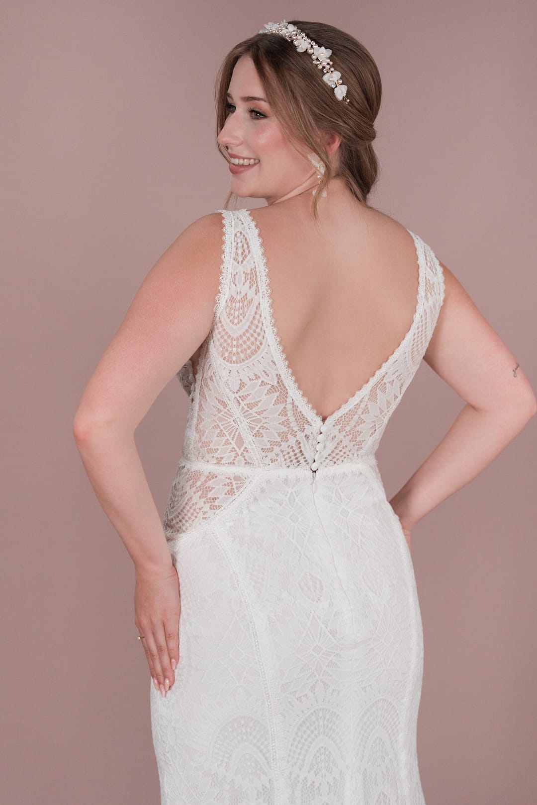 Für die unkonventionelle Braut bietet das Bridonista Brautkleid aus der R2L Capsule vintage-inspiriertes Design mit einem Touch von Boho-Charme. Mit geometrischen Cutouts, einer Rücken- und Ausschnitt-V-Form sowie einer mittellangen Schleppe ist dieses Kleid perfekt für eine Strand- oder Vintage-Hochzeit, die Romantik und Individualität vereint. Ein Taillenband und Spitzendetails runden den Look ab. Das Bridonista Brautkleid aus der R2L Capsule bietet einzigartiges Design und romantischen Charme für die unkonventionelle Braut. Mit geometrischen Cutouts, einer V-Form am Rücken und Ausschnitt sowie einer mittellangen Schleppe ist dieses Kleid perfekt für eine Strand- oder Vintage-Hochzeit, die Romantik und Individualität vereint. Ein Taillenband und Spitzendetails runden den Look ab und machen dieses Kleid zu einem Highlight auf jeder Hochzeit.
