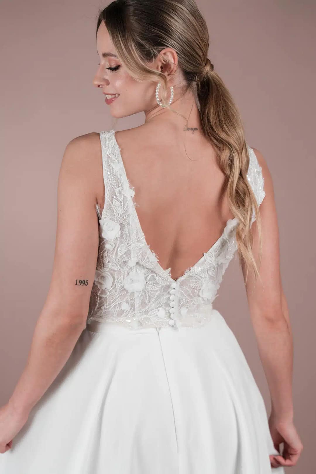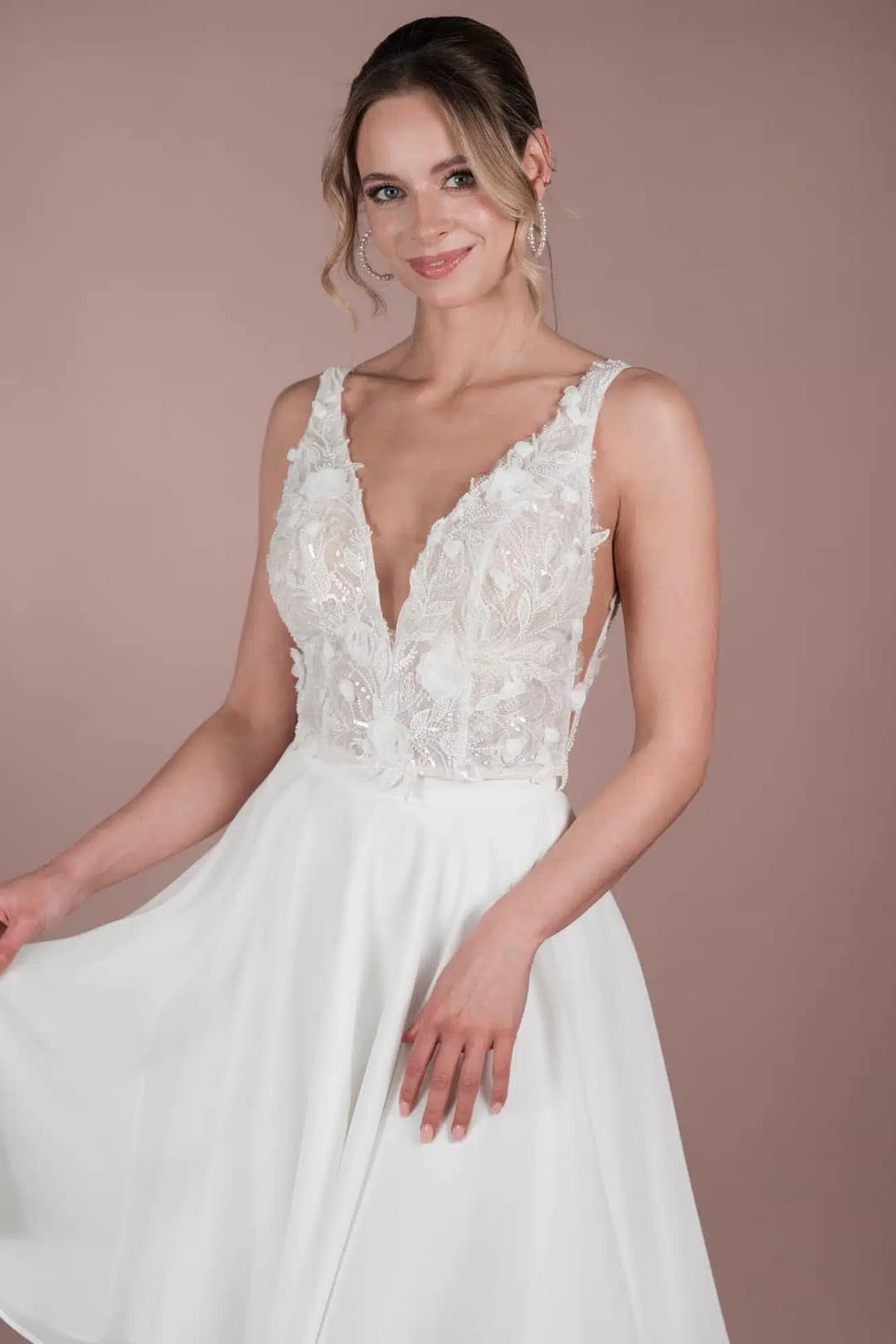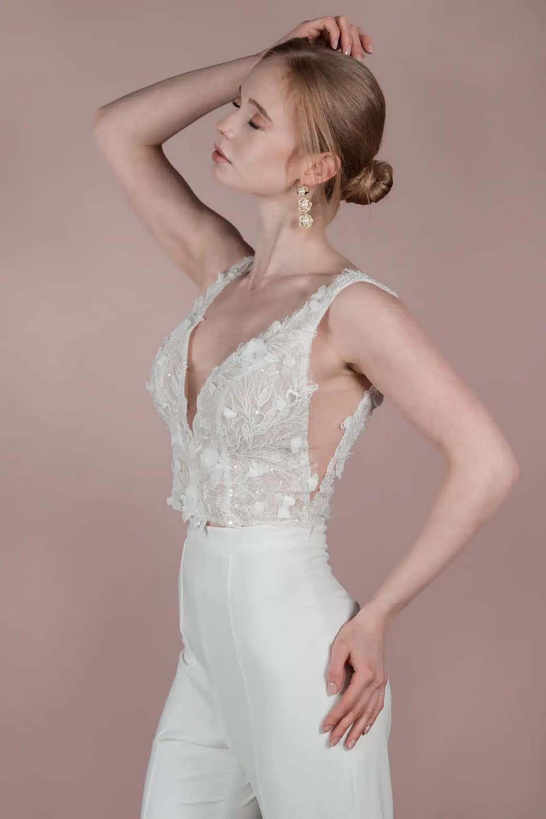 Mach dich bereit, eine Bridonista zu sein mit unserem R2L25-C06 Top! Dieses romantische Spitzentop mit wunderschönen 3D-Spitzen und Chantilly-Details ist perfekt für eine standesamtliche Hochzeit. Der V-Ausschnitt und der V-Rücken verleihen ihm einen Hauch von Eleganz, während die Spaghetti-Träger und die Cut-Outs für einen Hauch von Flirt sorgen. Vervollständige den Look mit unserer passenden Tüll-Corsage für ein wirklich einzigartiges und eigenständiges Outfit! Verleihe deinem Hochzeitsoutfit mit unserem Oberteil R2L25-C06 einen flirty Touch. Mit seiner atemberaubenden 3D-Spitze und den Chantilly-Details ist dieses Spitzentop perfekt für die Brautmodenliebhaberin (aka Bridonista) in dir. Der elegante V-Ausschnitt und der V-Rücken verleihen ihm einen Hauch von Raffinesse, während die Spaghetti-Träger und die Cut-Outs für einen verspielten Touch sorgen. Vervollständige deinen Look mit unserer passenden Tüll-Corsage für ein wirklich einzigartiges Brautzusammenspiel!