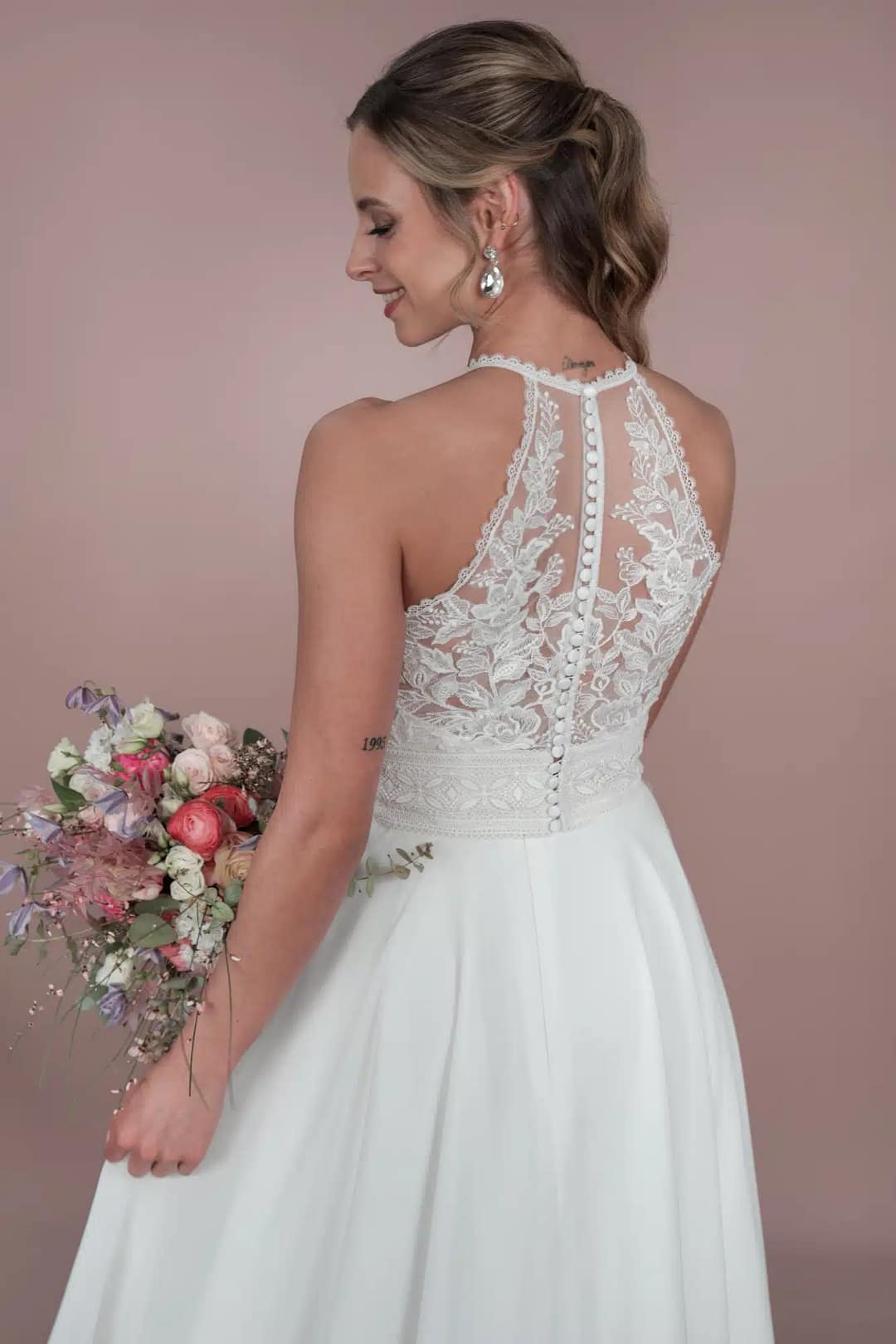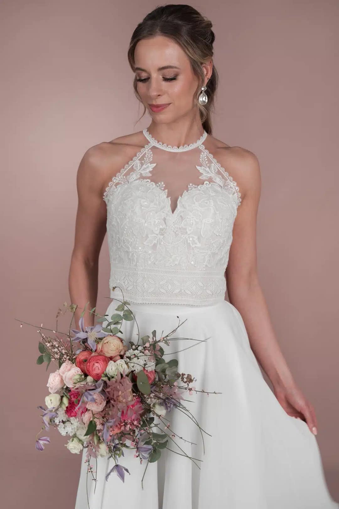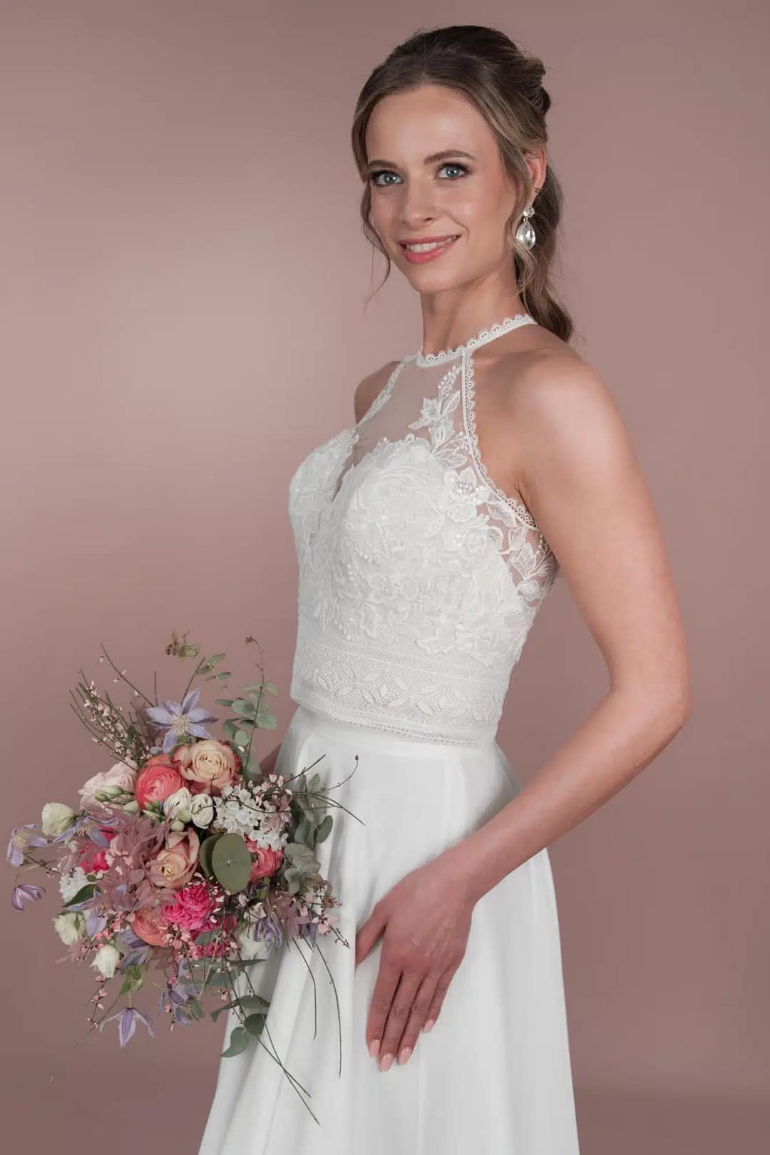Mach dich bereit, mit unserem R2L25-C07 Top stilvoll “Ich will” zu sagen! Dieses separate Bridonista-Top ist mit seiner feinen floralen Spitze und der charmanten Corsage perfekt für eine romantische und ausgefallene Hochzeit. Der hohe Halsausschnitt und die Illusions-Tüll-Details sorgen dafür, dass du dich wie eine echte Bridonista-Braut fühlst. Es ist perfekt für die Braut, die ihrer Hochzeit einen Hauch von floralem Spaß und schrulligem Charme verleihen möchte. Und mit dem hohen Halsausschnitt fühlst du dich im Handumdrehen wie eine Braut!