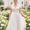 Liebe Braut, stell dir vor, du schwebst durch deinen großen Tag in einem Kleid, das deine Kurven zärtlich umarmt und deine bohemische Seele mit einem Hauch von Vintage-Magie zum Leuchten bringt. Das Plus-Size-Brautkleid Bridonista RQ26-A03 aus der Rubenesque Kollektion von Bridonista ist ein poetisches Meisterwerk, das Boho-Freiheit mit zeitloser Eleganz vereint. In seiner fließenden A-Linien Form, die sanft deine Silhouette umspielt und dir eine Aura von Leichtigkeit schenkt, wirst du dich fühlen wie eine romantische Wanderin in einem verzauberten Garten. Ob bei einer lockeren Boho-Hochzeit im Grünen oder einer nostalgischen Vintage-Feier – dieses Kleid ist dein Begleiter, der deine Träume in weichem Glanz verwirklicht und alle mit deiner natürlichen Ausstrahlung bezaubert.
