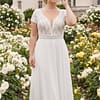 Dieses Kleid schmiegt sich an deine Figur an wie ein persönlicher Schatz, mit der A-Linien Form, die deine Linien verlängert und eine schmeichelnde Silhouette zaubert, während es Bewegungsfreiheit und Komfort bietet. Der Plus-Size-Schnitt aus der Rubenesque Kollektion feiert deine Kurven ohne Einschränkungen, lässt dich selbstbewusst und verzaubert fühlen – ideal für dich, die du deine Weiblichkeit in vollen Zügen genießen möchtest. Kombiniere es mit einem Boho-Schleier, der den Chiffon ergänzt, oder mit vintage Schmuck, der die florale Spitze aufgreift: Bridonista RQ26-A03 gibt dir den Raum, es zu deinem einzigartigen Statement zu machen, voller Anmut und Freude.