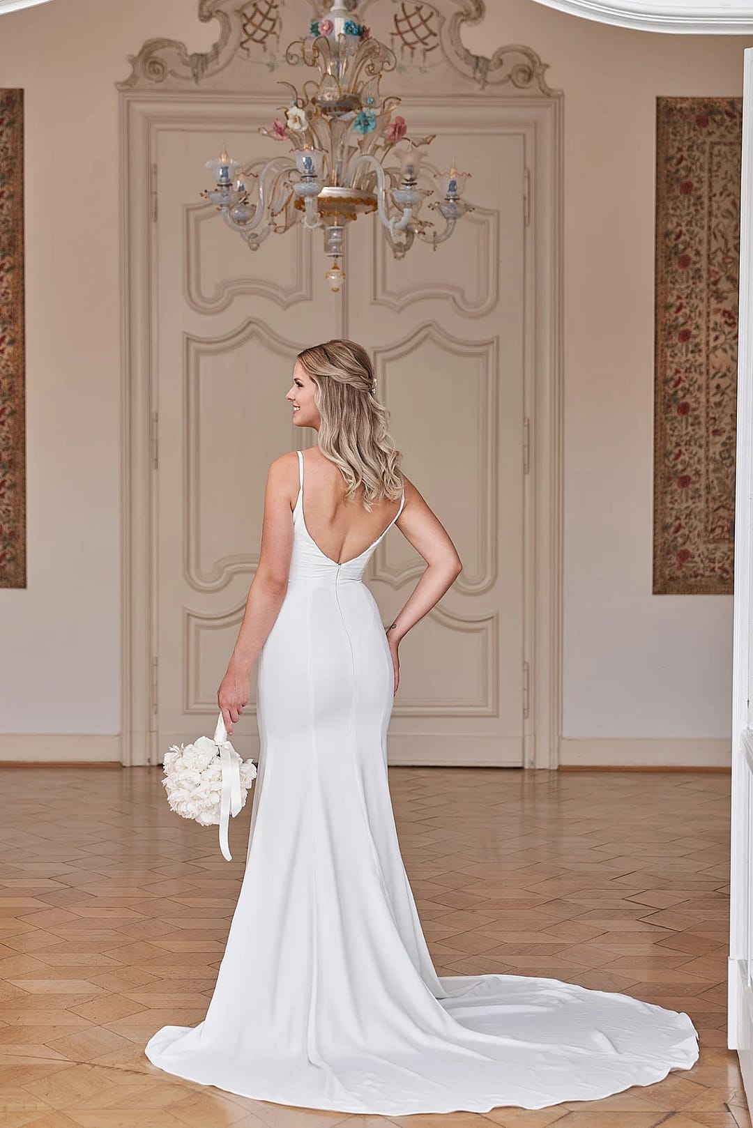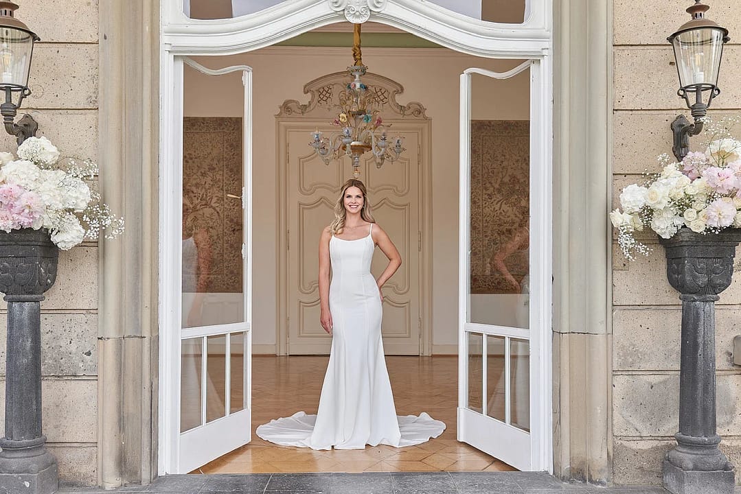 Entfessle die moderne Braut in dir mit S24-03! Dieses elegante Hochzeitskleid in Fit-and-Flare-Form sorgt dafür, dass du genauso umwerfend aussiehst, wie du dich fühlst. Es ist zeitlos schlicht, aus einem luxuriösen Kreppmaterial, mit einem geraden Ausschnitt und einem romantischen Rückenausschnitt in V-Form für einen wirklich schicken Brautlook. Außerdem kannst du dich mit einem stilvollen Spaghetti-Träger und einer feinen kurzen Schleppe sehen lassen. Verwöhne dich! Es ist Zeit, “Ja” zu diesem prächtigen Kleid zu sagen! 😉