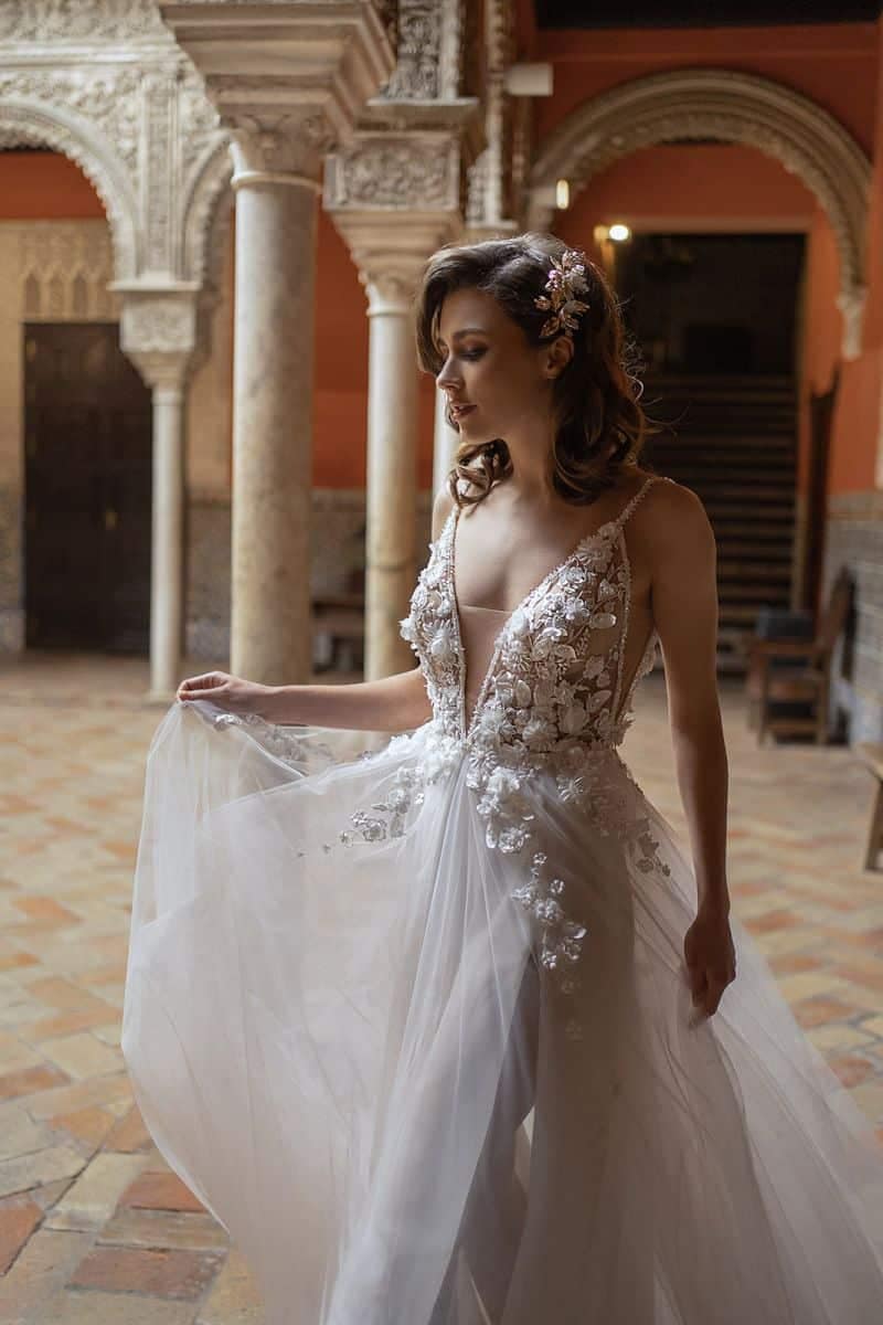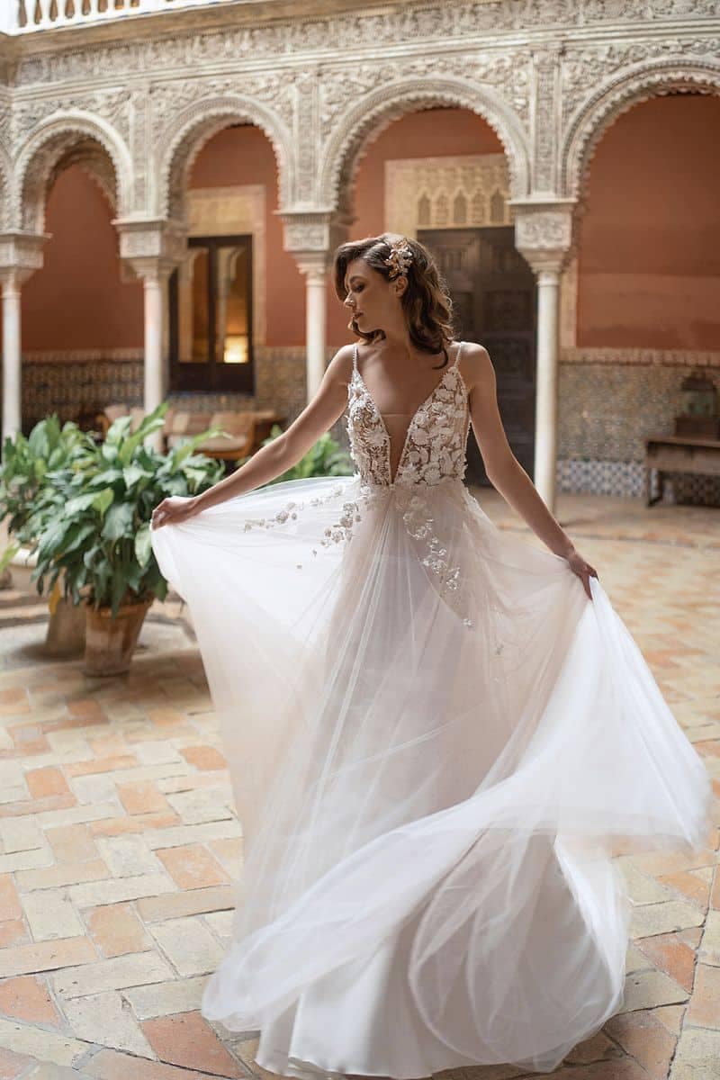 Mit dem Kleid Dama Couture Alissa in A-Linie wird dein Gang zum Hochzeitsaltar unvergesslich.