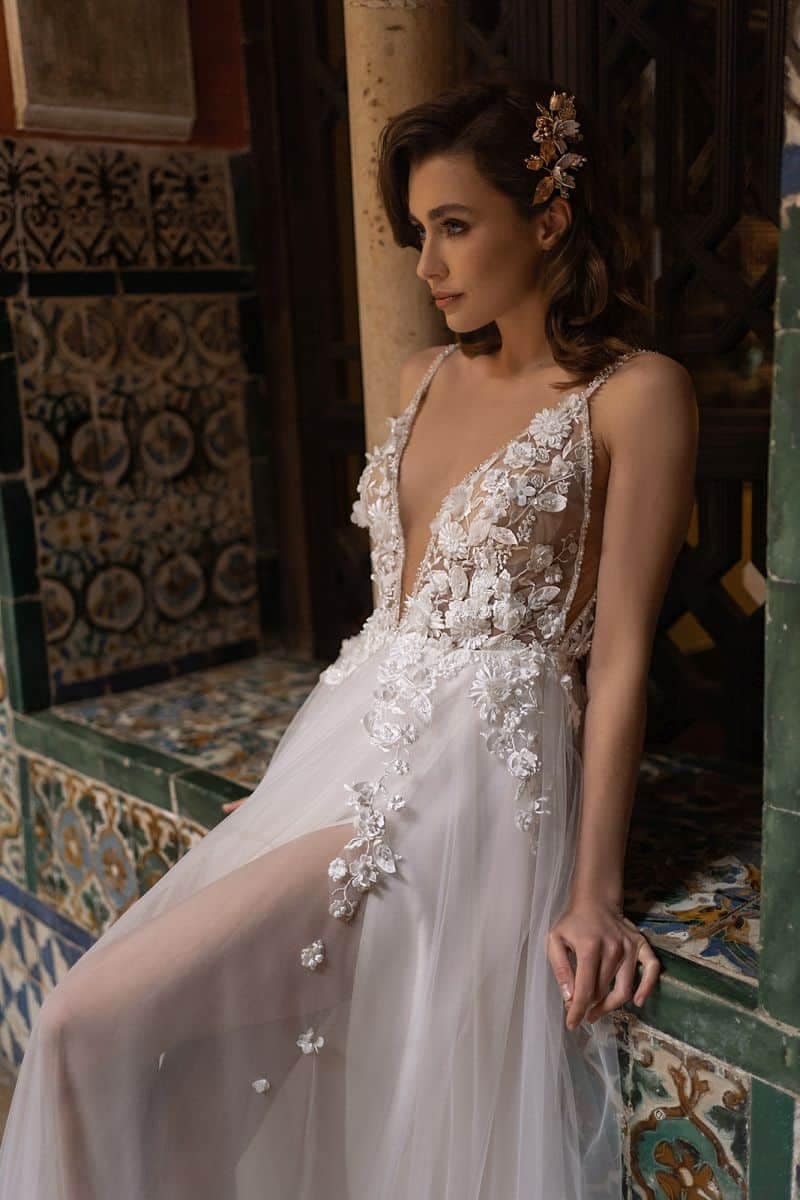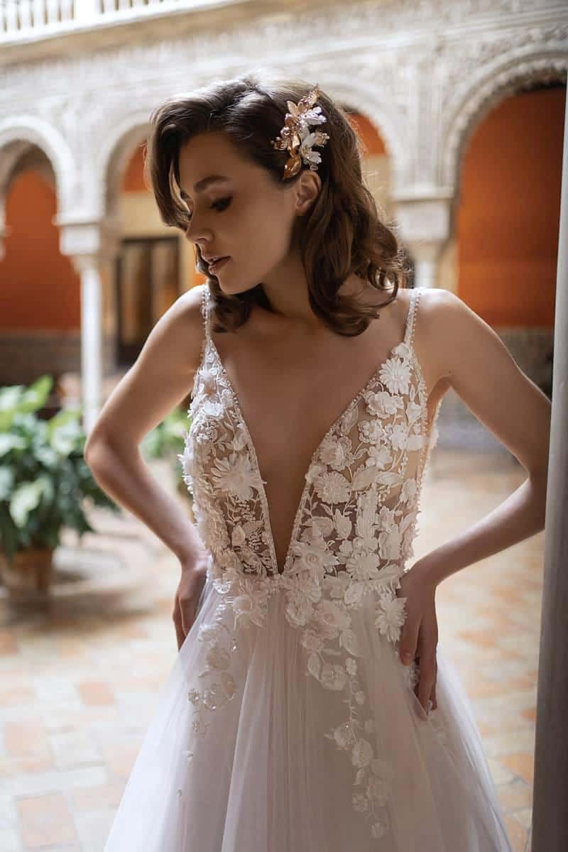 Dama Couture steht für Liebe zum Element. Angefertigt mit Nuancen und Besonderheiten, die aus dir eine stolze Braut machen.