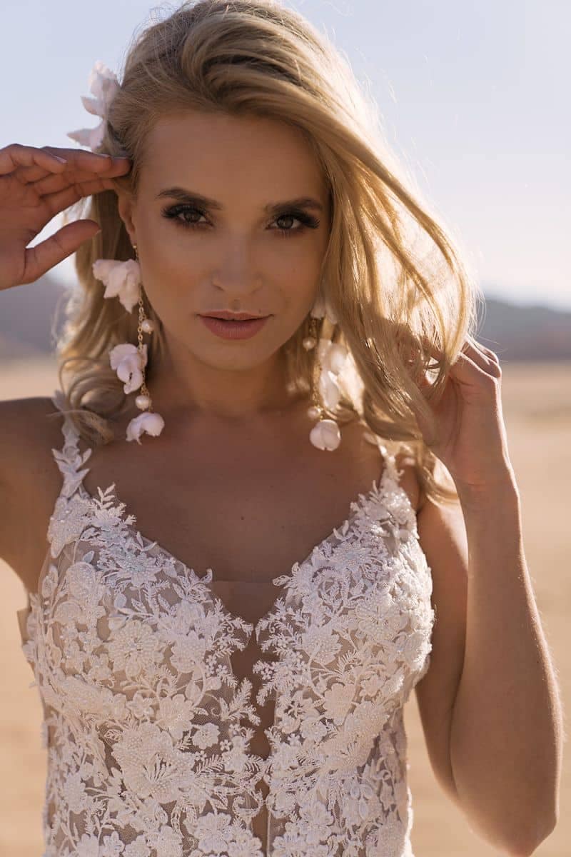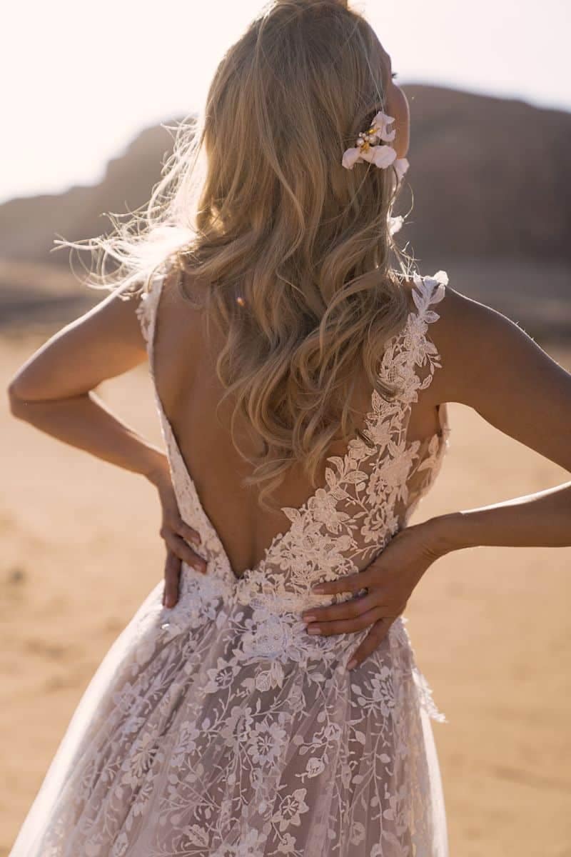 Dieser aufregende V-Ausschnitt ist optimal für eine Hochzeit bei heißen Temperaturen. Dein Kleid wird damit zum Blickfang auf deiner Sommerhochzeit.
