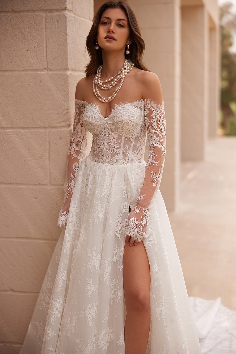Das Herzstück dieses Meisterwerks ist das Korsett-Oberteil, das deine Brust und Taille meisterhaft hervorhebt und dir eine verführerische Silhouette schenkt. Es ist vollständig aus feiner Spitze gefertigt, die mit einem pflanzlichen Motiv verziert ist – Blätter und Blüten, die wie ein natürlicher Garten über den Stoff tanzen und eine romantische, erdverbundene Note hinzufügen. Der obere Teil aus Spitze unterstreicht deine weiblichen Formen mit Eleganz, während der offene Rücken einen Hauch von Aufregung hinzufügt, der deine Rückseite zart enthüllt und für bewundernde Blicke sorgt. Die langen Ärmel aus Spitze verleihen dem Kleid eine geheimnisvolle, verhüllte Romantik und umspielen deine Arme sanft, sodass du dich gleichzeitig schützend und sinnlich fühlst.