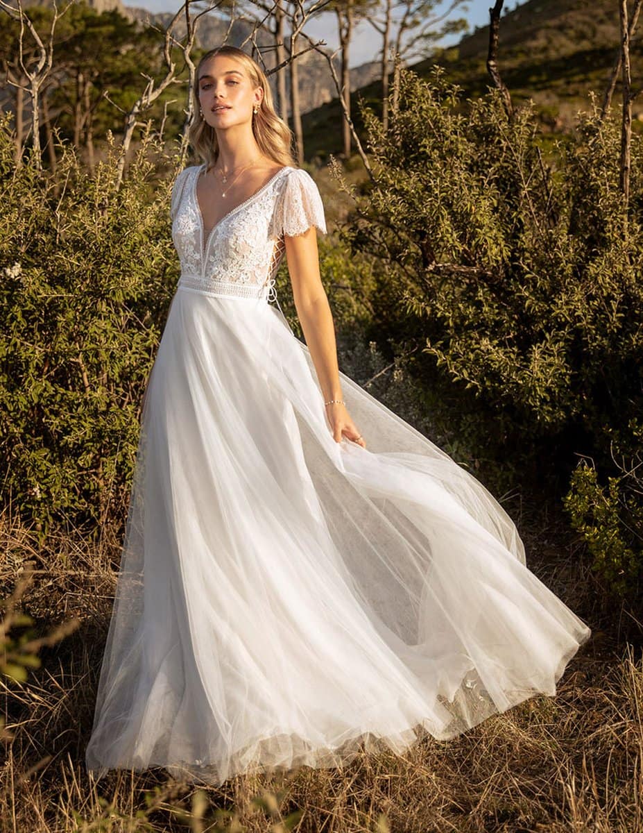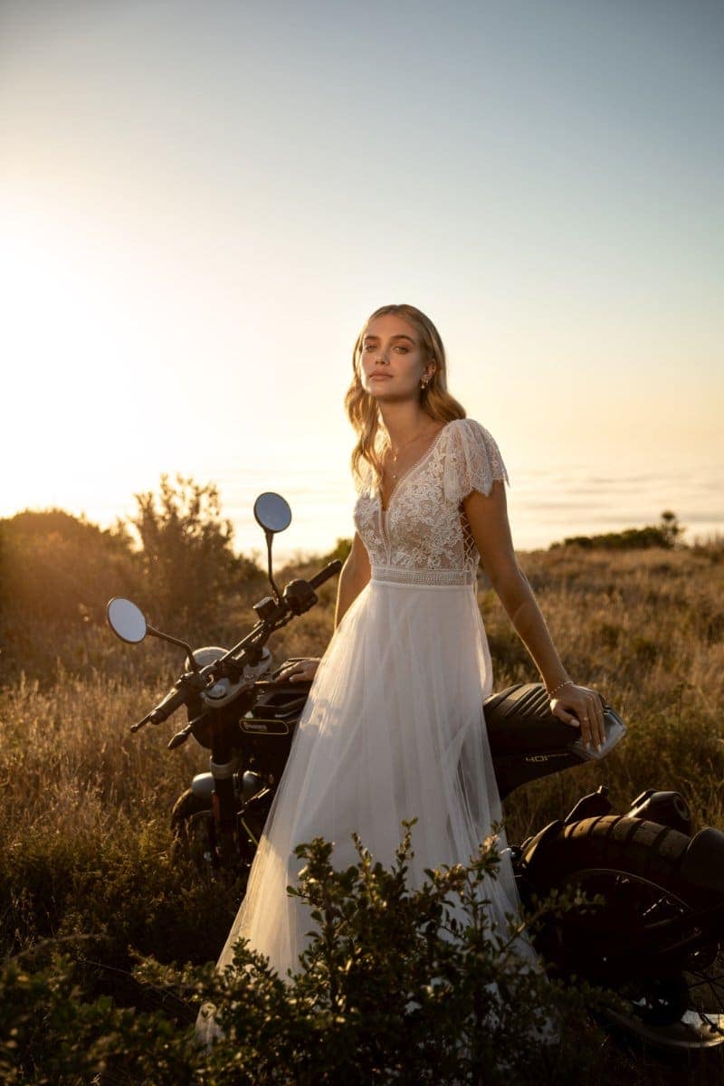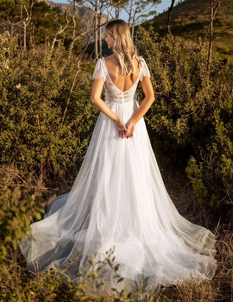 Mit dem Kleid Kelsey Rose Saharah 50417 in A-Linie wird dein Gang zum Altar unvergesslich.