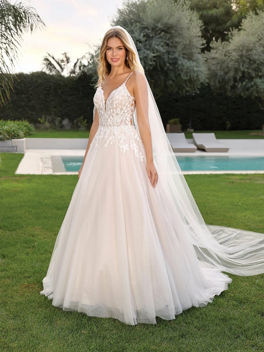 Verliebe dich in das Agape-Kleid von Ladybird – eine skurrile Liebesgeschichte im Vintage-Stil! Dieses romantische Brautkleid mit verspielter Spitze, süßen Spaghettiträgern und einem tiefen Rückenausschnitt sorgt für Herzklopfen! Außerdem: ein verführerischer V-Ausschnitt, glitzernder Tüll und zierliche Prinzessinnennähte. Trau dich, ein bisschen mutig zu sein, mit einem stilvollen, aber sexy Twist!