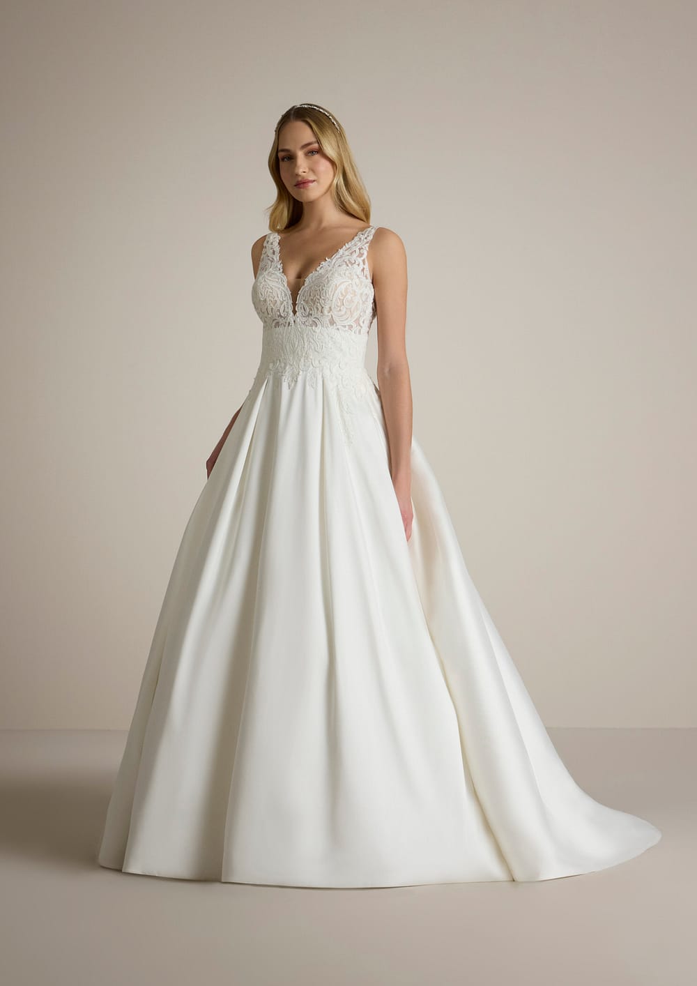 Erlebe die romantische Eleganz des Ladybird Modells Amta, das mit seiner atemberaubenden A-Linie die Herzen zukünftiger Bräute höherschlagen lässt. Dieses meisterhaft gestaltete Brautkleid kombiniert klassische Schönheit mit modernen Akzenten und schafft so ein unvergessliches Outfit für deinen großen Tag.