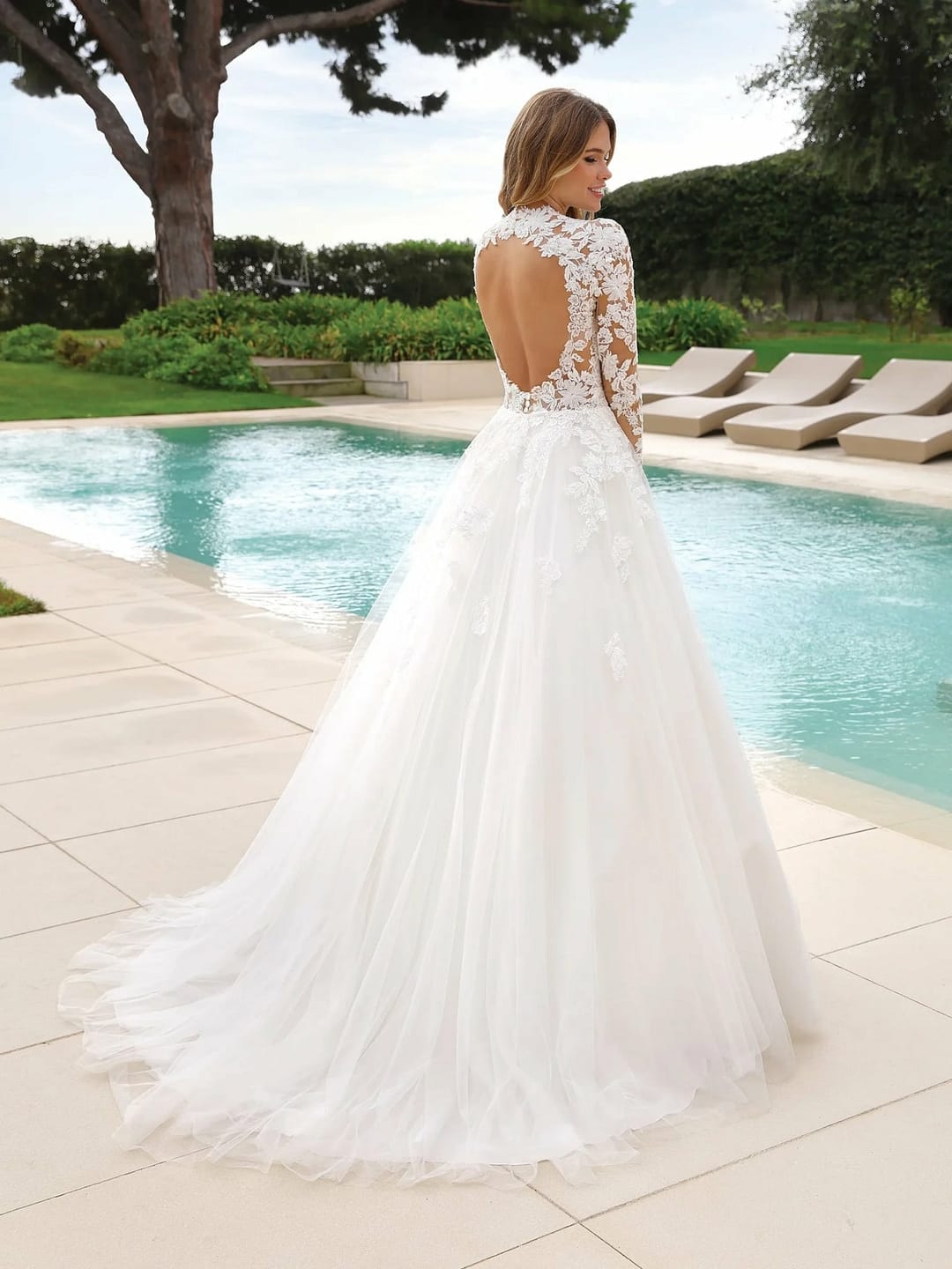 Sorge für einen großen Auftritt mit Ladybird Anine, einem einzigartigen Brautkleid! Dieser Stunner ist aus Tüll gefertigt und mit feiner Spitze besetzt, die einen klassischen Look mit einem auffälligen Twist bietet: ein hoher Ausschnitt und ein herzförmiger Rücken mit Schlüsselloch, der die A-Linien-Silhouette und die langen Ärmel betont. Mach dich bereit für dein Happy End mit Ladybird Anine!