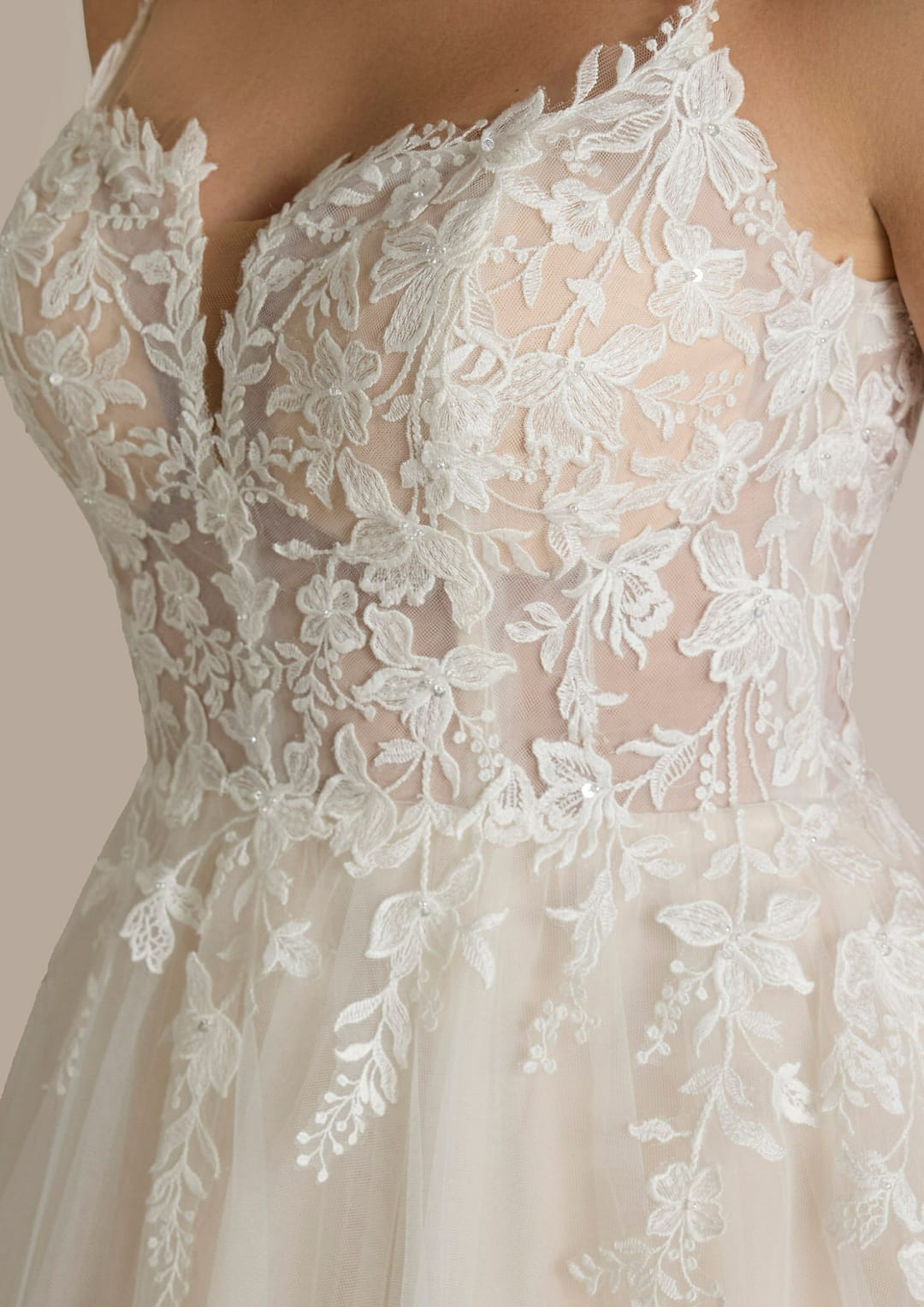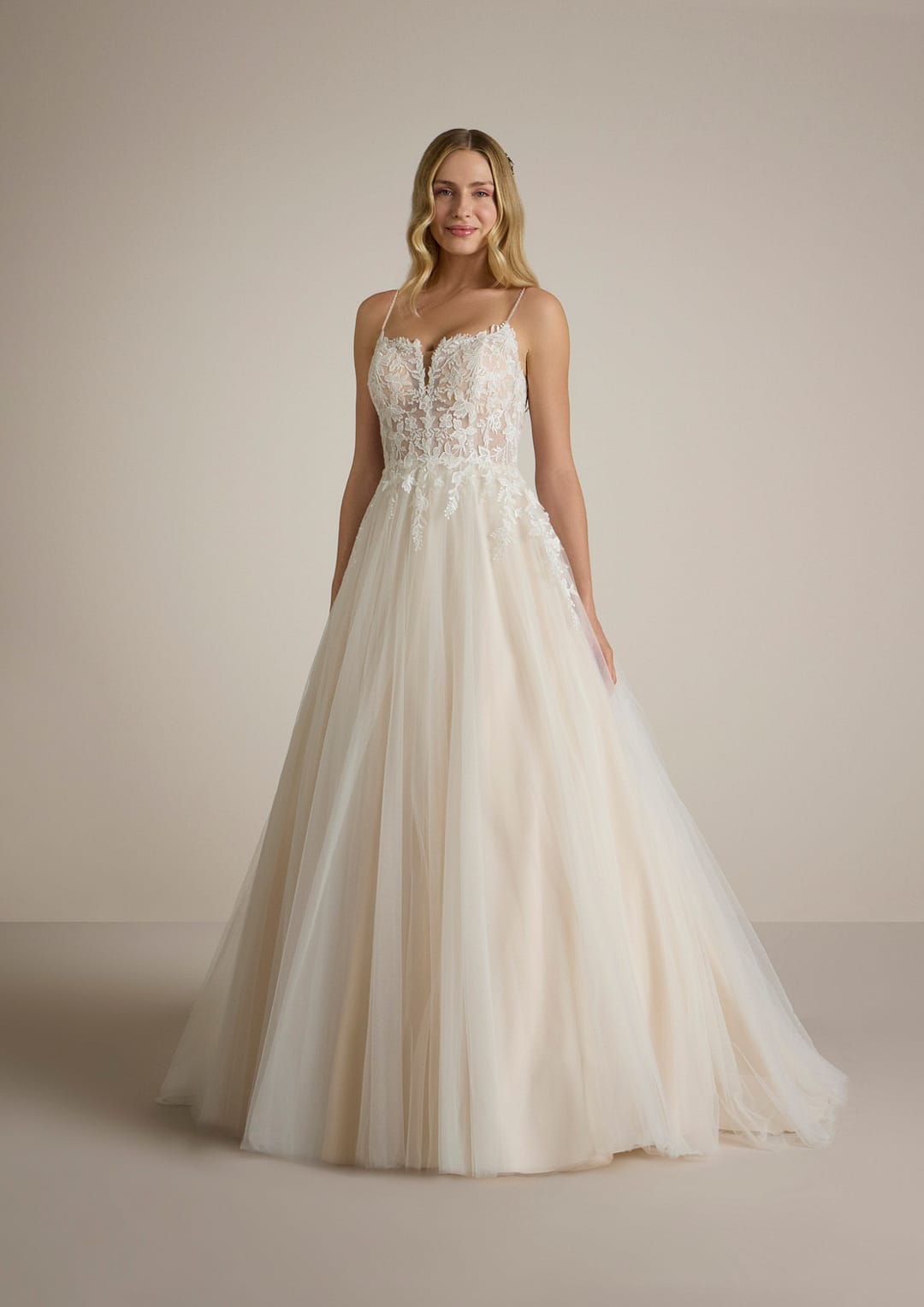 Stell dir vor, du schlüpfst in ein Brautkleid, das dich sofort in seinen Bann zieht – so fühlt es sich an, wenn du das atemberaubende A-Linien-Brautkleid „Hilmi“ von Ladybird trägst. Dieses traumhafte Kleid aus zartem Tüll umarmt dich sanft und verleiht dir eine Figur, die sowohl elegant als auch feminin wirkt. Die A-Linien-Silhouette, die sich sanft von der Taille abwärts verjüngt, umschmeichelt deine Kurven und gibt dir die Freiheit, dich an deinem großen Tag unbeschwert zu bewegen.