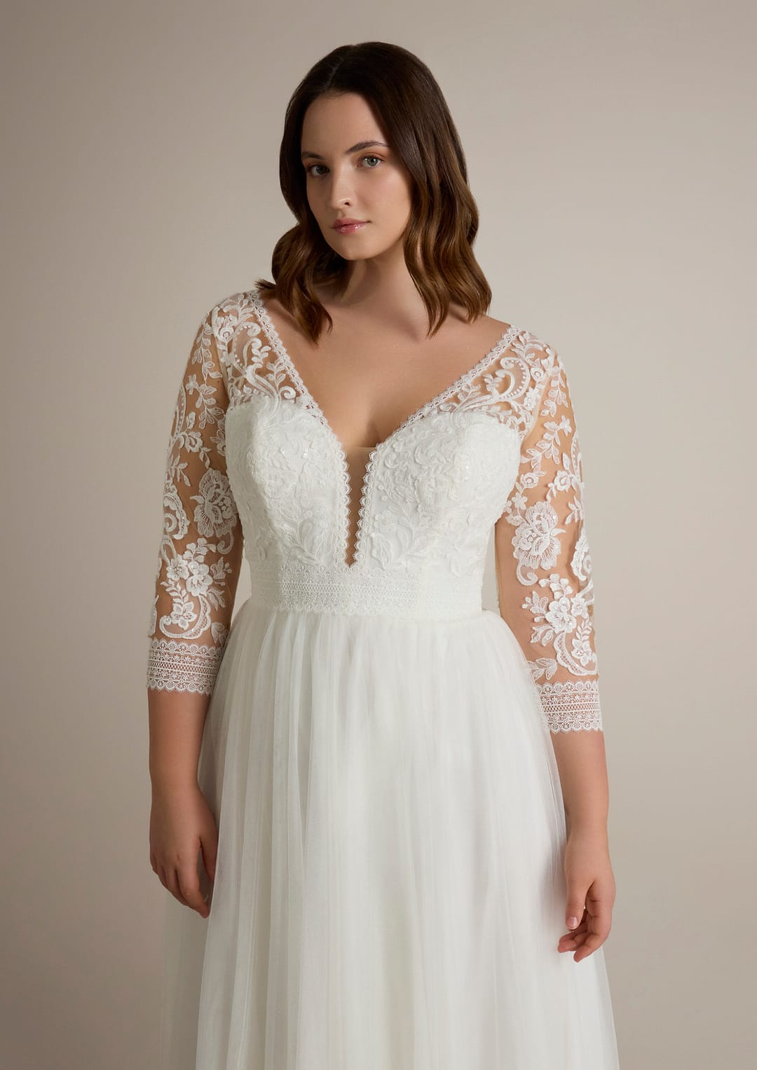 Die Kombination von hochwertigem Tüll und exquisiter Spitze sorgt zudem dafür, dass du dich in diesem Kleid einfach wohlfühlen wirst – perfekt für einen Tag voller Emotionen und unvergesslicher Augenblicke.
