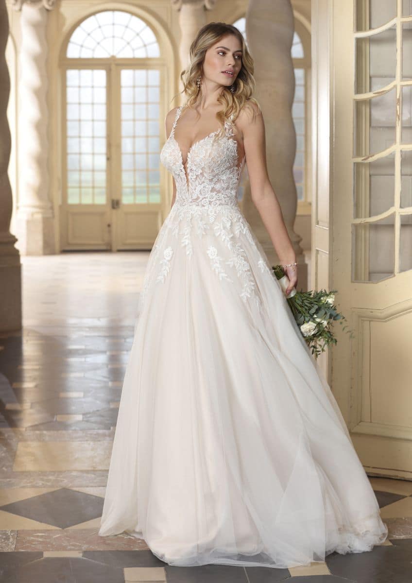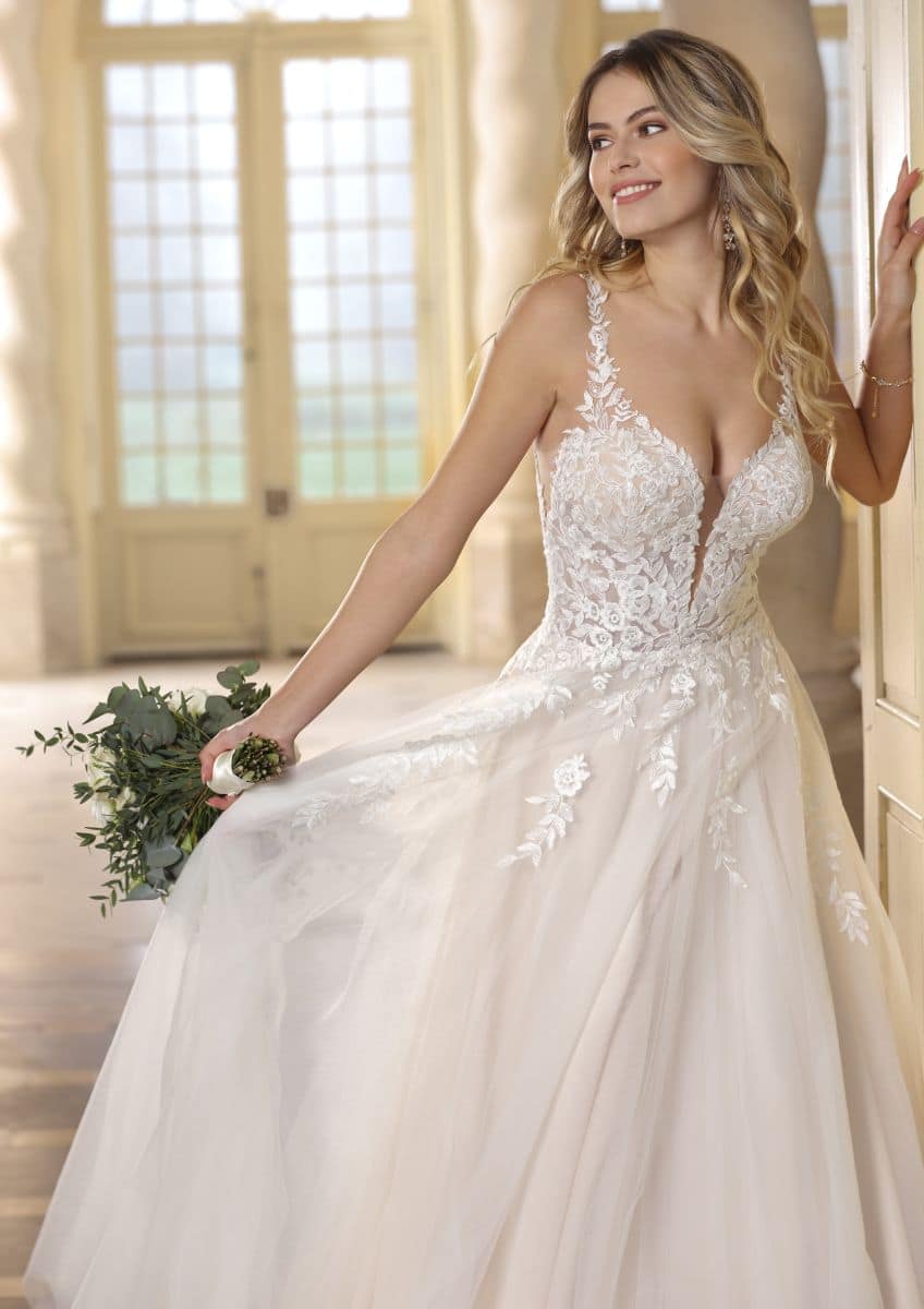 Dieses märchenhafte Kleid ist gut geeignet, wenn du ein mittleres Budget für dein Hochzeitskleid zur Verfügung hast. Beachte bitte, dass wir den endgültigen Preis des Modells bei uns im Geschäft angeben.