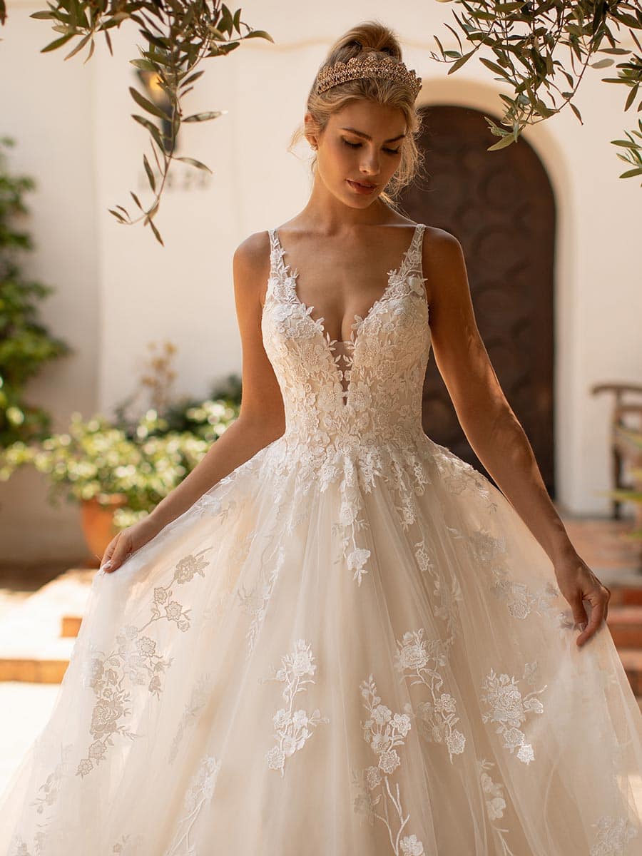 Dieses märchenhafte Modell ist gut geeignet, wenn du ein mittleres Budget für dein Brautkleid zur Verfügung hast. Beachte bitte, dass wir den endgültigen Preis des Kleides bei uns im Geschäft angeben.