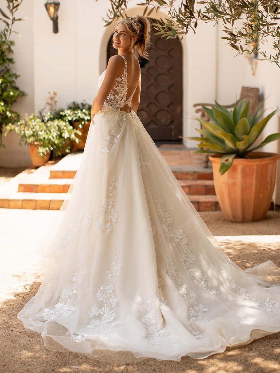 Dieser aufregende V-Ausschnitt ist optimal für eine Hochzeit bei heißen Temperaturen. Dein Modell wird damit zum Blickfang auf deiner Sommerhochzeit.
