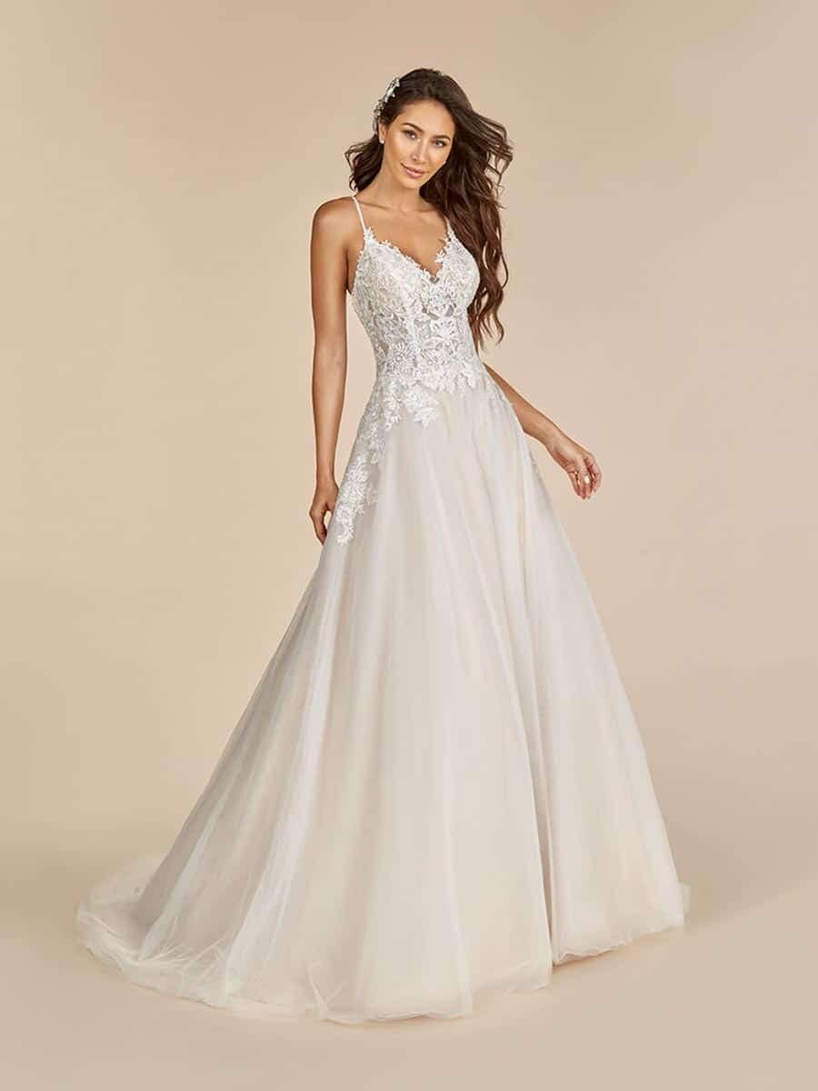 Mit dem Kleid Moonlight Bridal T890 in A-Linie wird dein Gang zum Altar unvergesslich.