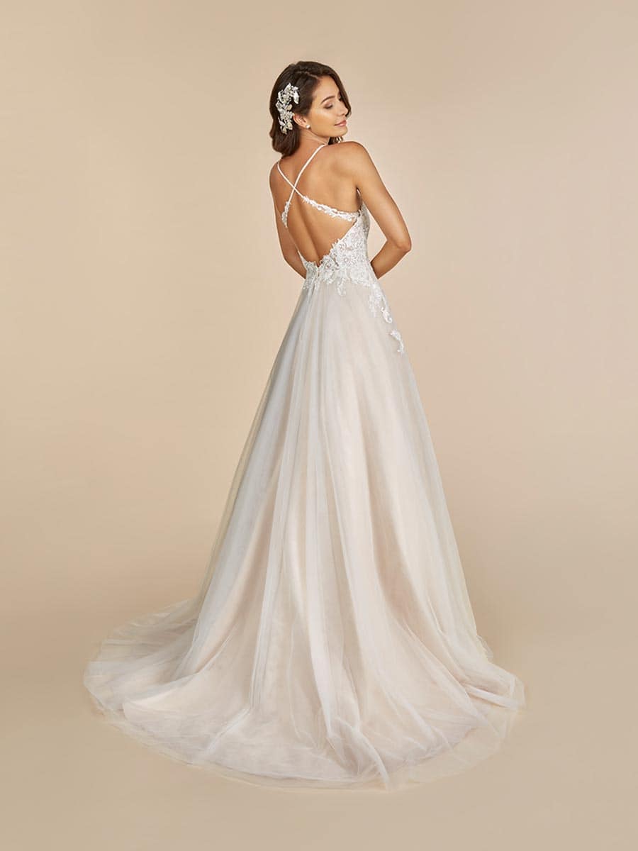 Trotz der kurzen Schleppe ist das Modell schick und malerisch – besonders beim Einzug zum Hochzeitsaltar oder wenn du beim Tanzen in den Armen deines Liebsten bist.