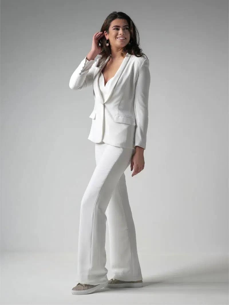 Entdecke den Bridal Blazer, ein absolutes Must-have für deinen besonderen Tag! Dieses atemberaubende Kleidungsstück bietet dir unzählige Vorteile und Alleinstellungsmerkmale, die dich begeistern werden. Als 3-Teiler ist der Bridal Blazer ideal kombinierbar mit einem passenden Top, Rock oder einer Hose. Damit kannst du deinen ganz individuellen Look kreieren und dich von der Masse abheben. Ganz gleich, ob du eine elegante Hochzeit im Standesamt planst oder einen modernen Twist in deine Trauung bringen möchtest – der Bridal Blazer ist die perfekte Wahl. Mit der renommierten Marke Poirier erhältst du Qualität und Stil in einem Kleidungsstück vereint. Der Bridal Blazer besticht durch seine edle Farbe Ivory, die deinem Brautlook eine zauberhafte Note verleiht. Das hochwertige Material Crepe sorgt für einen angenehmen Tragekomfort und eine fließende Silhouette. Ein echtes Highlight des Bridal Blazers ist sein schicker Revers Schalkragen, der für einen raffinierten Look sorgt. Die beiden Taschen im Businesslook bieten nicht nur Platz für deine wichtigsten Utensilien, sondern verleihen dem Blazer auch eine moderne Note. Mit langen Ärmeln bist du bestens vor kühleren Temperaturen geschützt und kannst dennoch stilvoll auftreten. Der Bridal Blazer besticht durch seine schlichte Eleganz und wird mit einem einzigen Knopf geschlossen. Die minimalistische Gestaltung ermöglicht es dir, den Fokus auf andere Elemente deines Outfits zu legen und deine Persönlichkeit strahlen zu lassen. Mit dem Poirier T-200 Blazer erwirbst du nicht nur ein hochwertiges Kleidungsstück, sondern auch ein Stück Begehrlichkeit und Emotionen. Lass dich von diesem einzigartigen Produkt verzaubern und motiviere dich zum Kauf. Der Bridal Blazer ist die perfekte Wahl für selbstbewusste Bräute, die einen modernen und stilvollen Auftritt wünschen.