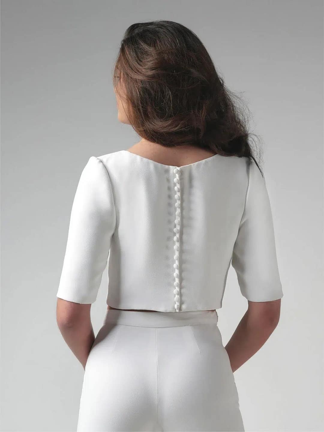 Das Poirier T-220 Top ist ein traumhaftes Brautoberteil, das du perfekt als Teil eines eleganten 3-Teilers tragen kannst. Kombiniere es mit einem Blazer, einem Rock oder einer Hose für einen umwerfenden Look. Dieses Oberteil ist besonders geeignet für dein Standesamt-Outfit.