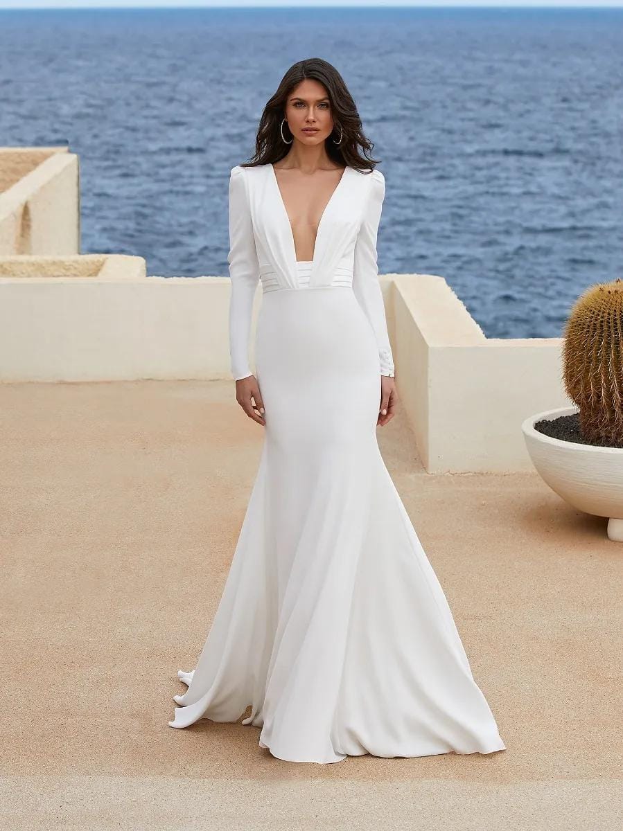 Strahle mit dem Modell der Marke Pronovias Sexyness und Eleganz aus. Du wirst deinen Partner umhauen. Pronovias verspricht dir beste Qualität für alles, was du an dem Tag vorhast. Lass dich fallen und genieße einfach den Moment.