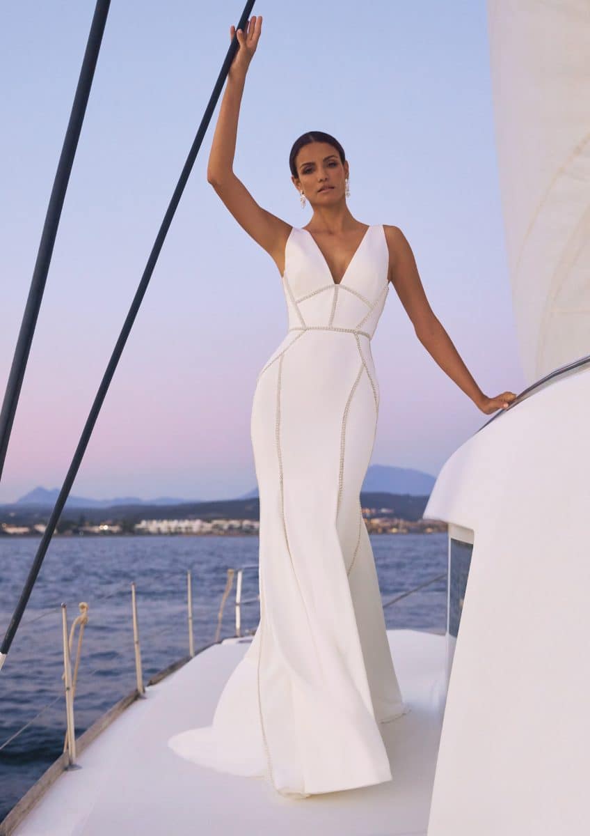Strahle mit dem Modell der Marke Pronovias Sexyness und Eleganz aus. Du wirst deinen Partner umhauen. Pronovias verspricht dir beste Qualität für alles, was du an dem Festtag vorhast. Lass dich fallen und genieße einfach den Moment.