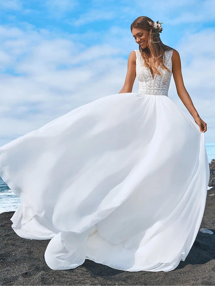 Mit dem Modell Pronovias Baobas in A-Linie wird dein Gang zum Altar unvergesslich.