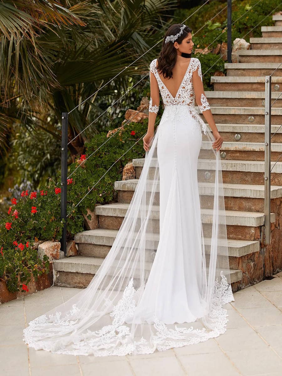 Trotz der kurzen Schleppe ist das Kleid mondän und märchenhaft – besonders beim Einzug zum Altar oder wenn du beim Tanzen in den Armen deines Liebsten bist.
