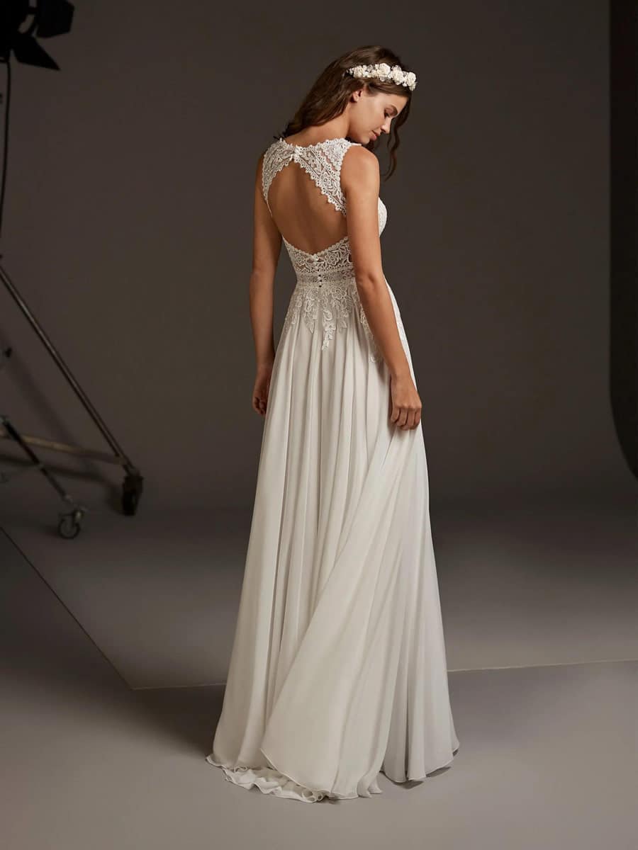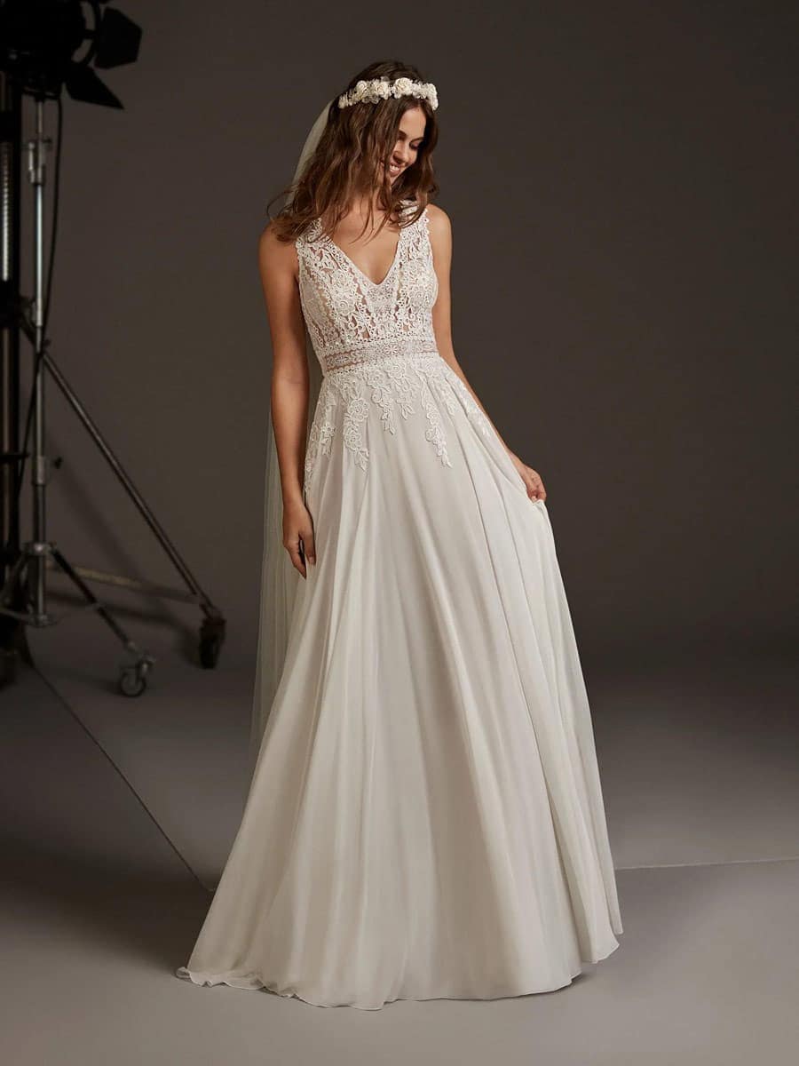 Wohlfühlen in A-Linie: das Kleid Pronovias Comet hinterlässt einen bleibenden Eindruck für den schönsten Tag eures Lebens.