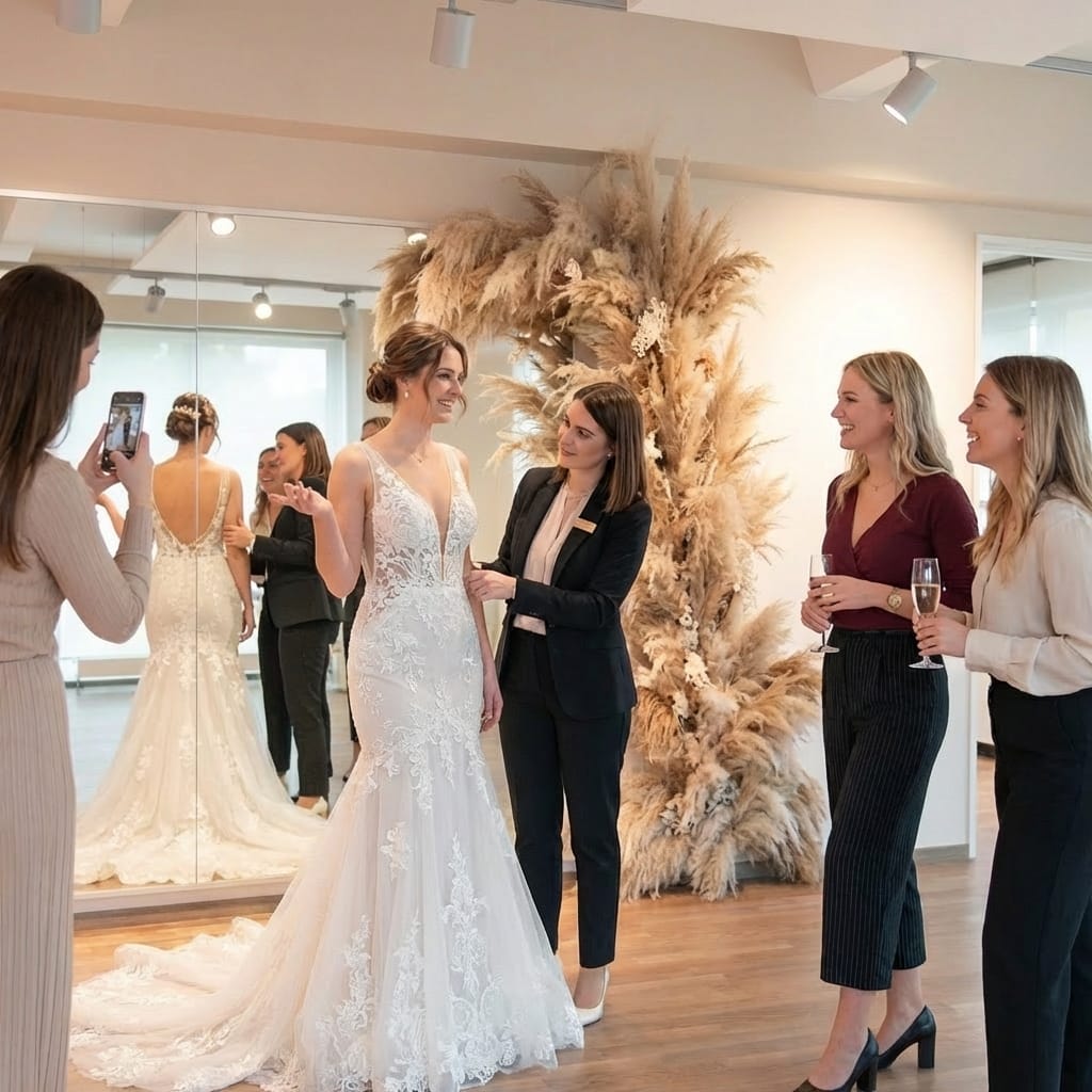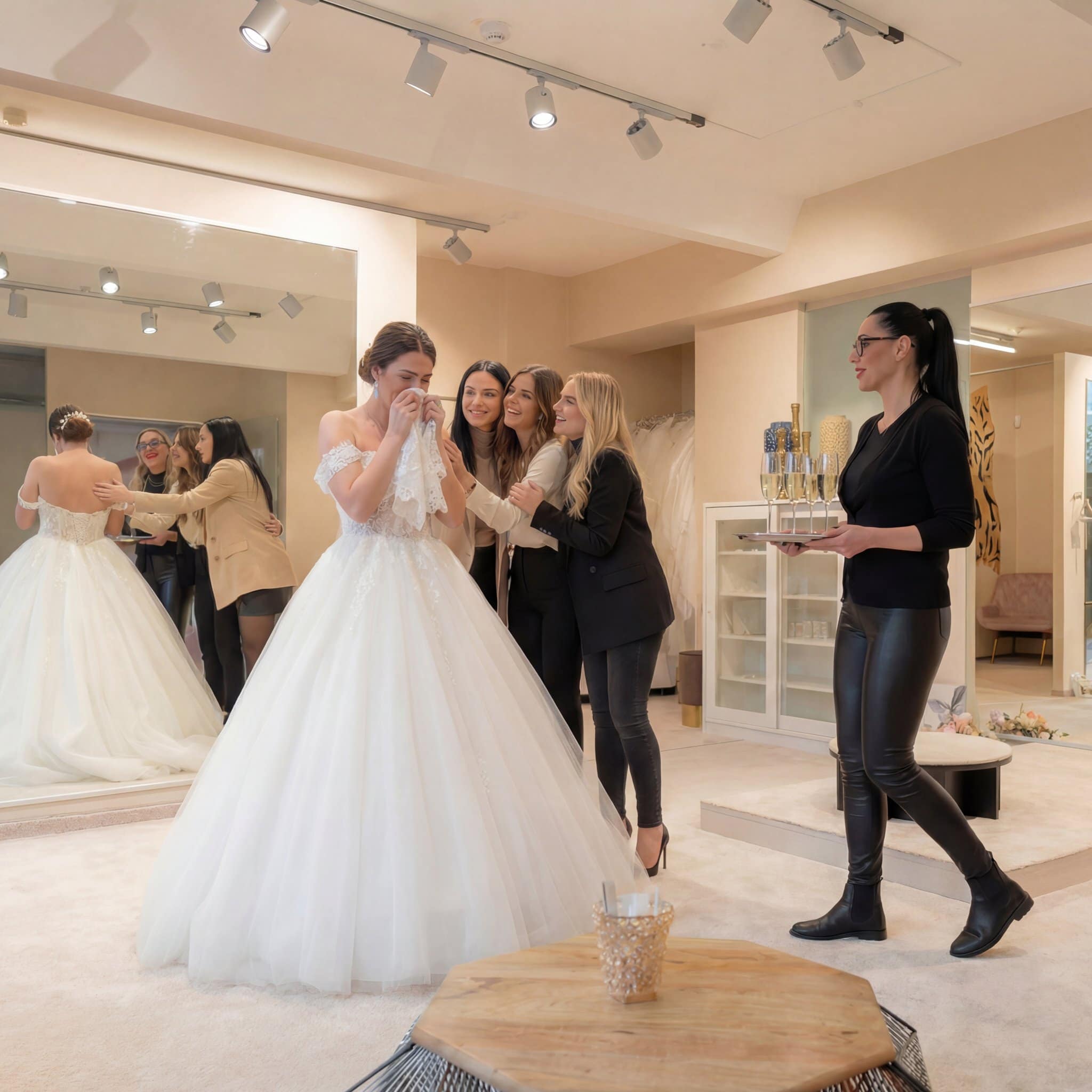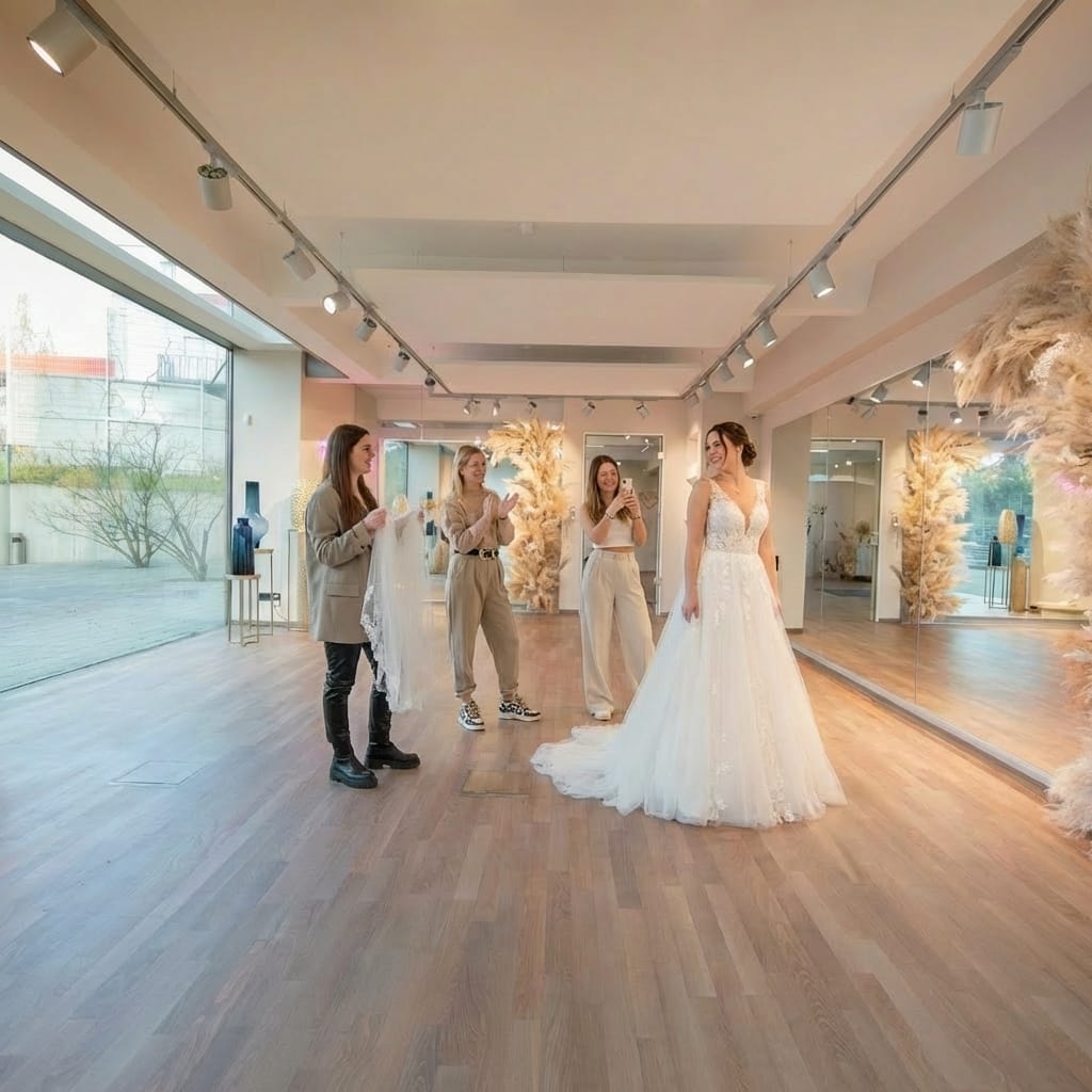 Unser 1000m2 Brautmodengeschäft bietet nicht nur eine riesige Auswahl an traumhaften Hochzeitskleidern in verschiedensten Stilen, sondern auch eine professionelle Beratung, die mit viel Zeit und Herz erfolgt.